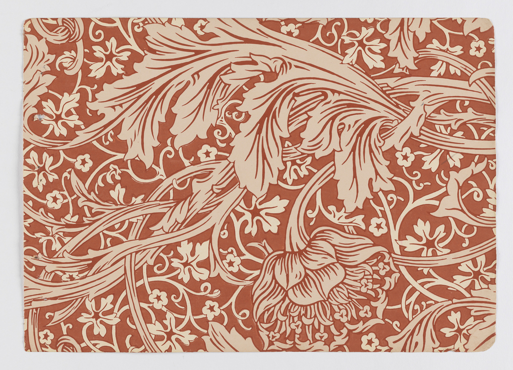 Sidewall - Sample, Arcadia; Designed by Morris & Co. (United Kingdom); Manufactured by Jeffrey & Company (United Kingdom); block-printed paper; H x W x D: 27 x 37.5 x 6 cm (10 5/8 x 14 3/4 x 2 3/8 in.); Museum purchase from Smithsonian Regents Collections Acquisition Fund; 1980-46-1-22