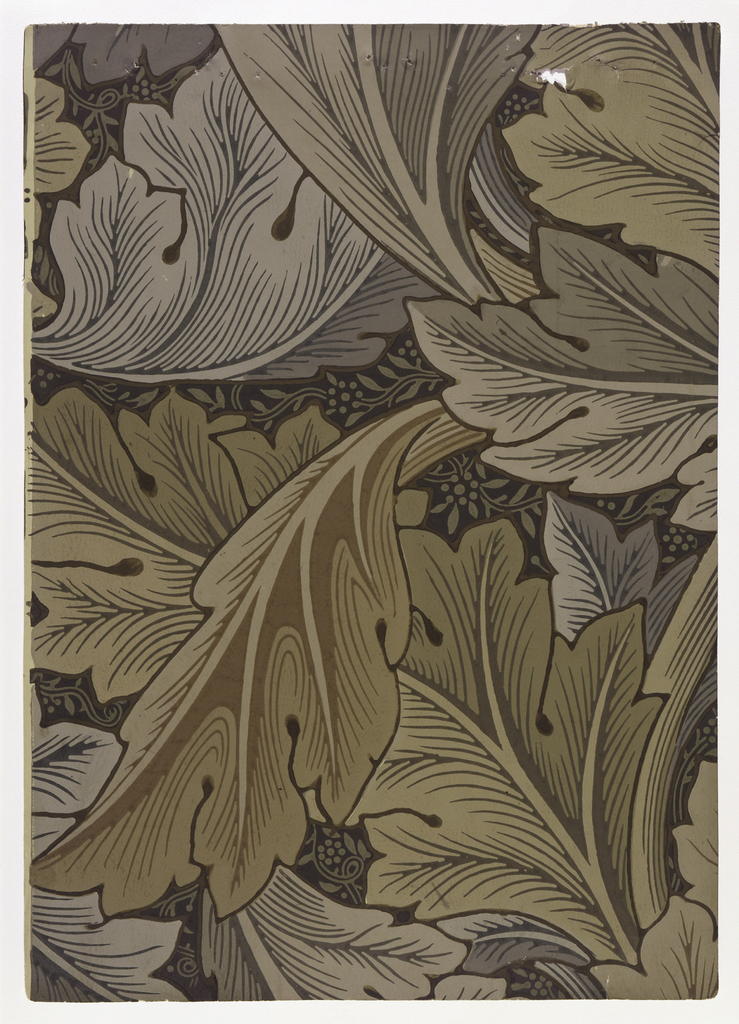 This is a Sidewall - sample. It was designed by Morris & Co. and manufactured by Jeffrey & Company. It is dated 1887 and we acquired it in 1980. Its medium is block-printed paper. It is a part of the Wallcoverings department.