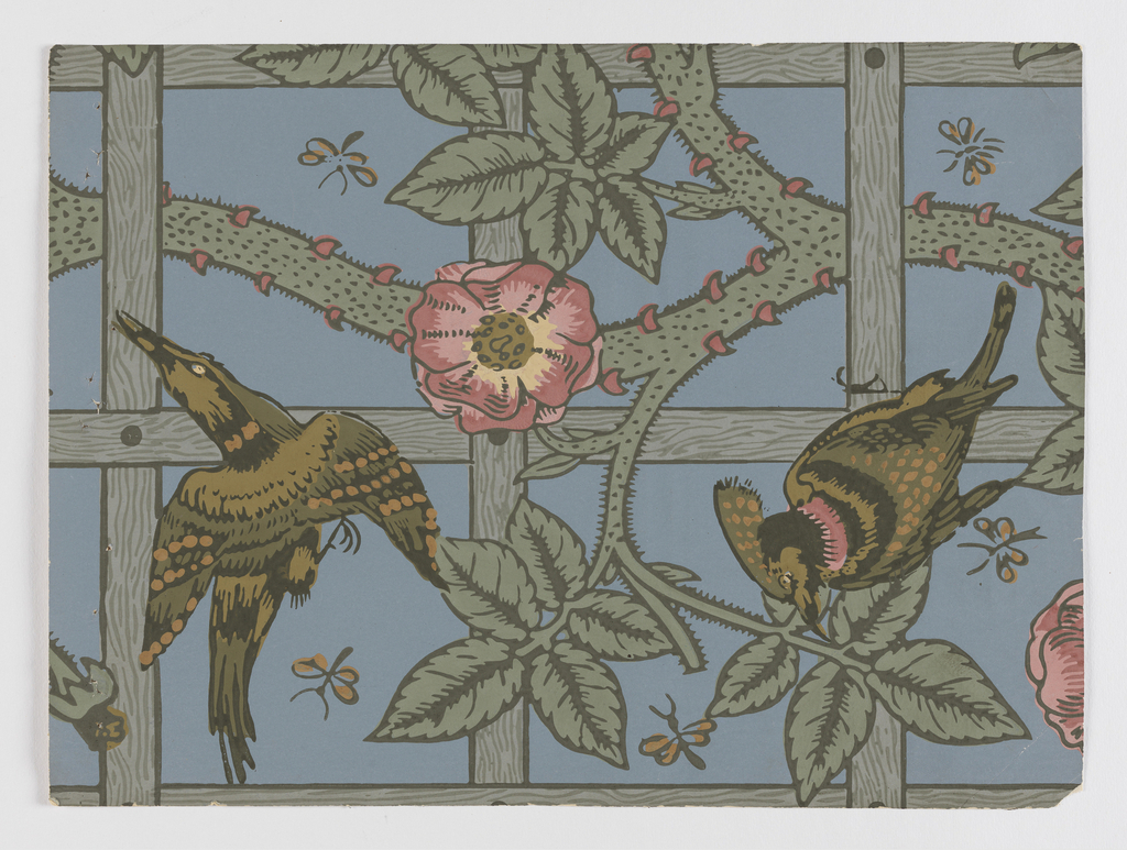 Sidewall - Sample, Trellis; Designed by William Morris (British, 1834–1896); Manufactured by Jeffrey & Company (United Kingdom); Made for Morris & Co. (United Kingdom); block-printed paper; H x W x D: 27 x 37.5 x 6 cm (10 5/8 x 14 3/4 x 2 3/8 in.); Museum purchase from Smithsonian Regents Collections Acquisition Fund; 1980-46-1-168
