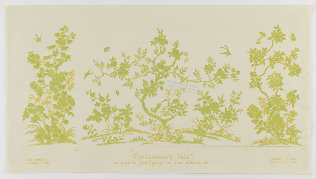 Mural Miniature, Pomegranate Tree; Designed by John C. Georgi; Manufactured by Louis W. Bowen, Inc. (United States); screen-printed paper; 39.5 x 68.5 cm (15 9/16 x 26 15/16 in.); Gift of Louis W. Bowen, Inc.; 1969-18-8-g
