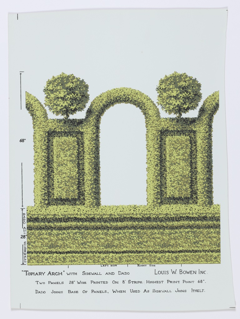 Mural Miniature, Topiary Arch; Manufactured by Louis W. Bowen, Inc. (United States); screen-printed paper; 39.5 x 68.5 cm (15 9/16 x 26 15/16 in.); Gift of Louis W. Bowen, Inc.; 1969-18-8-aa