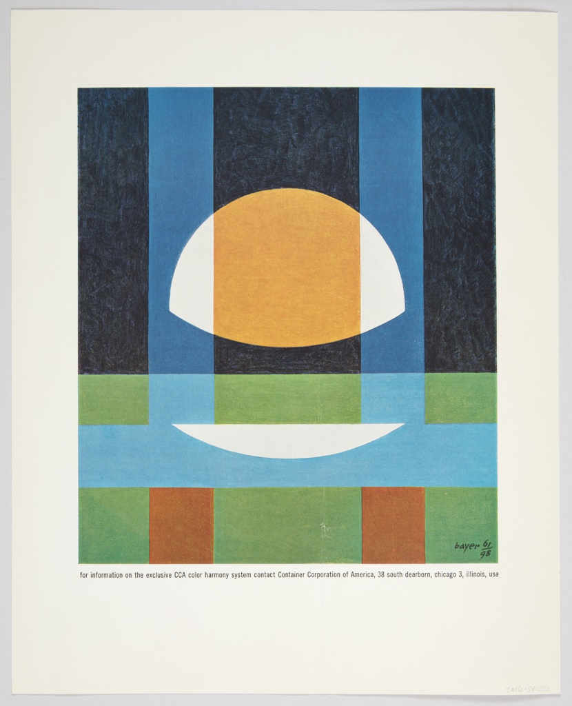 Printed in black ink, verso, lower margin: for information on the exclusive CCA color harmony system contact Container Corporation of America, 38 south dearborn, chicago 3, illinois, usa