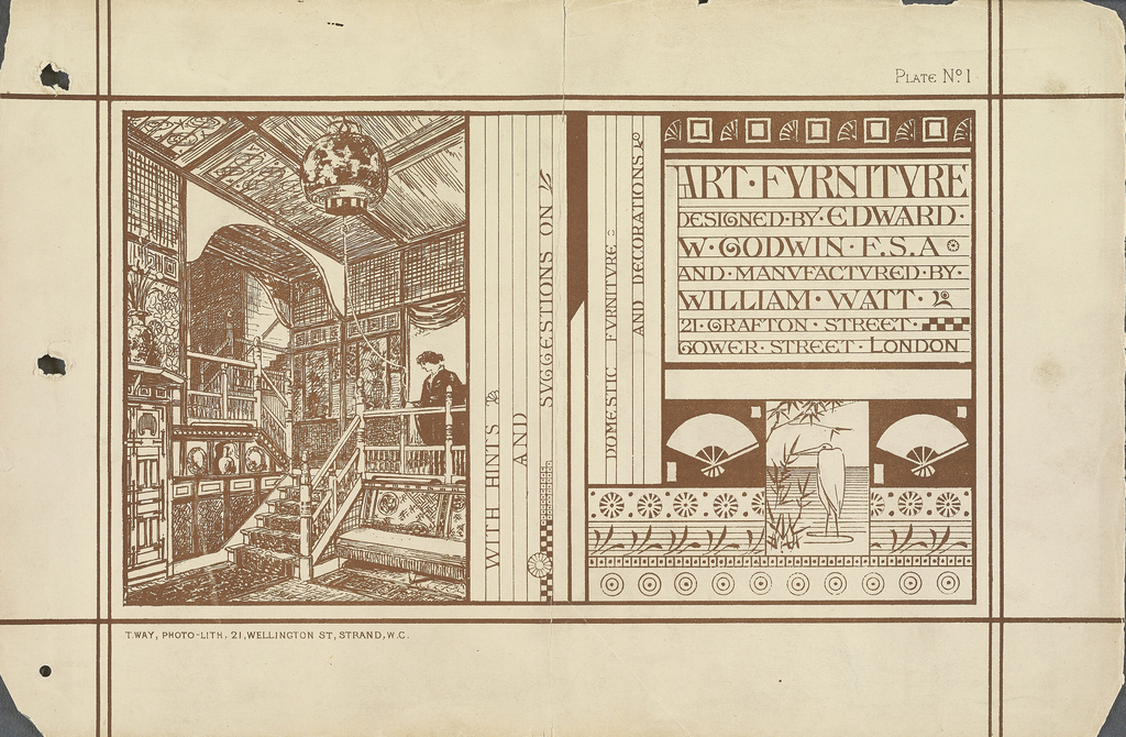 <ref name=CH>{{cite web |url=https://www-4.collection.cooperhewitt.org/objects/1108954805/ |title=Plate No. 1, Art furniture from designs by E.W. Godwin and others: with hints and suggestions on domestic furniture and decoration |author=Cooper Hewitt, Smithsonian Design Museum |accessdate=20 December 2025 |publisher=Smithsonian Institution}}</ref>