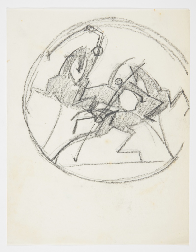 Drawing, Design for Plate, Polo Players; Designed by William Hunt Diederich (American, b. Hungary, 1884–1953); graphite on tracing paper; 27.9 × 21.6 cm (11 × 8 1/2 in.); Gift of Michael Diederich; 2018-21-22
