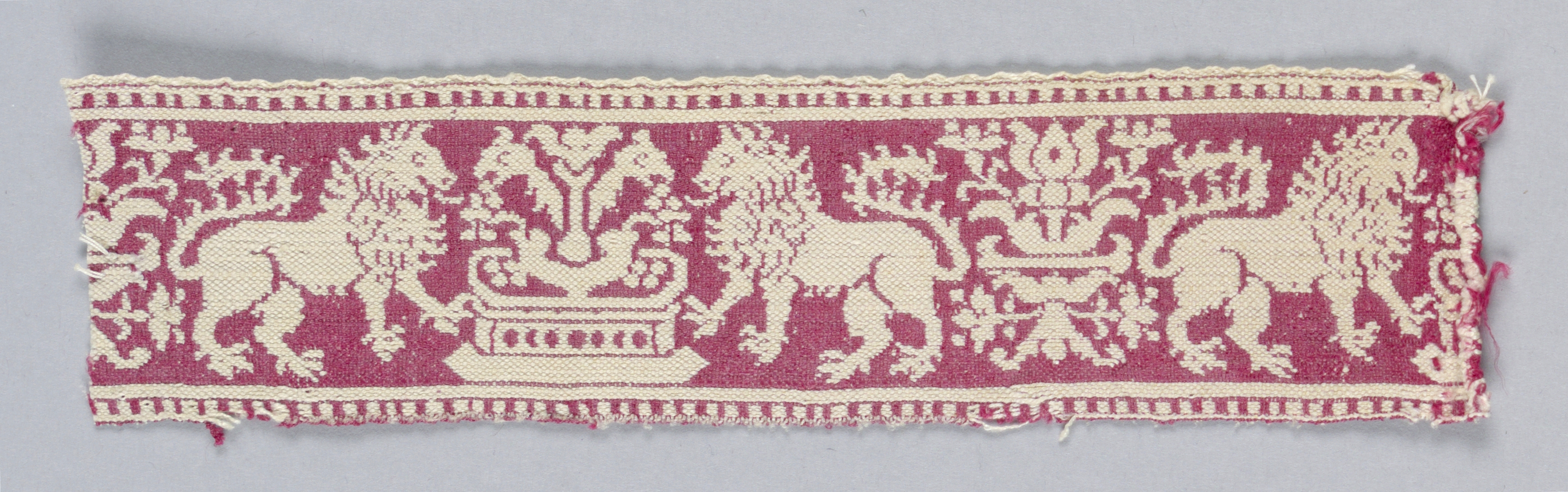 This is a Band. It is dated 17th century. Its medium is silk, linen and its technique is plain compound. It is a part of the Textiles department.