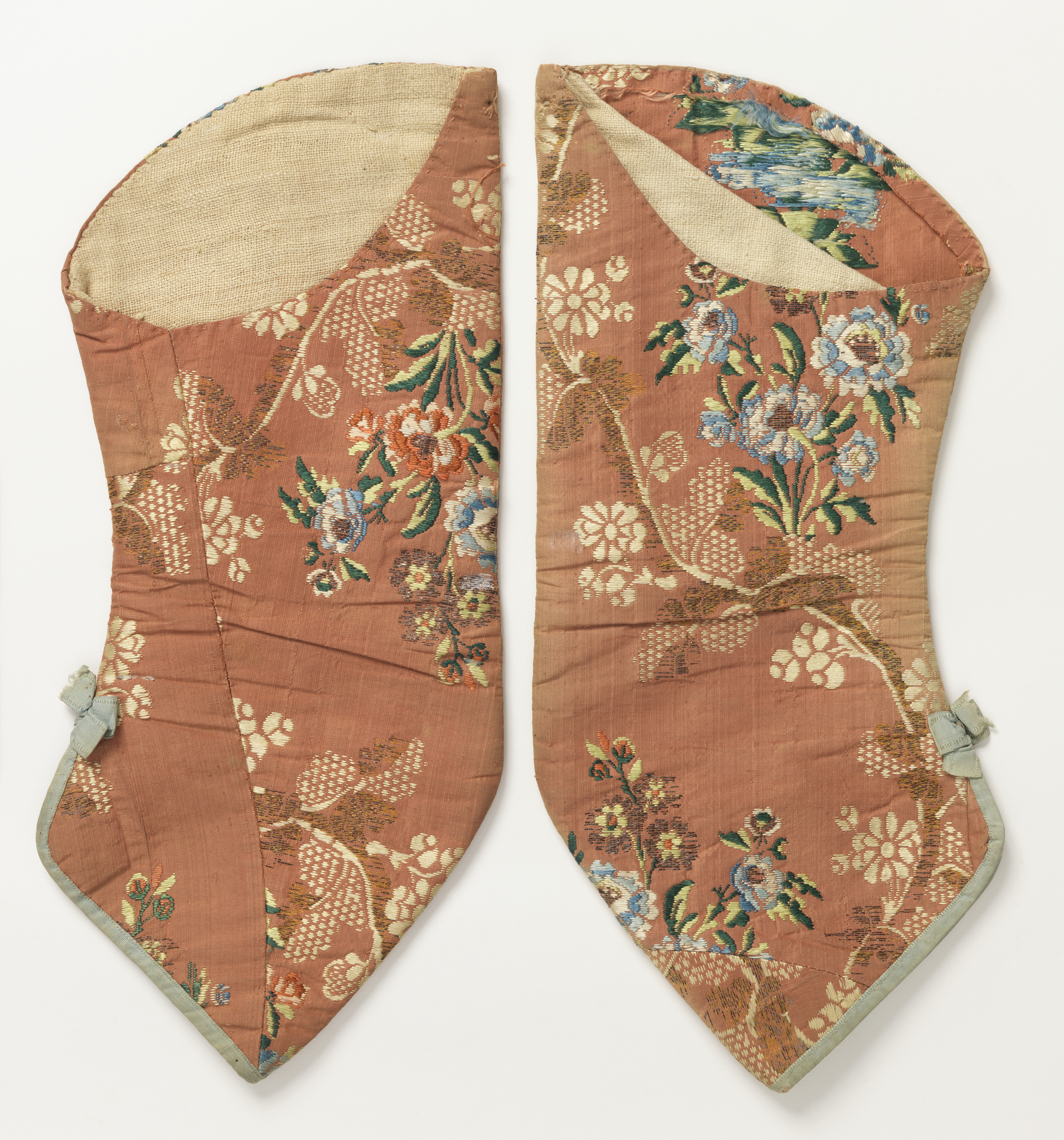 This is a Pair of sleeves. It is dated 18th century. Its medium is silk, metallic yarns and its technique is plain weave with discontinuous supplementary weft (brocade). It is a part of the Textiles department.