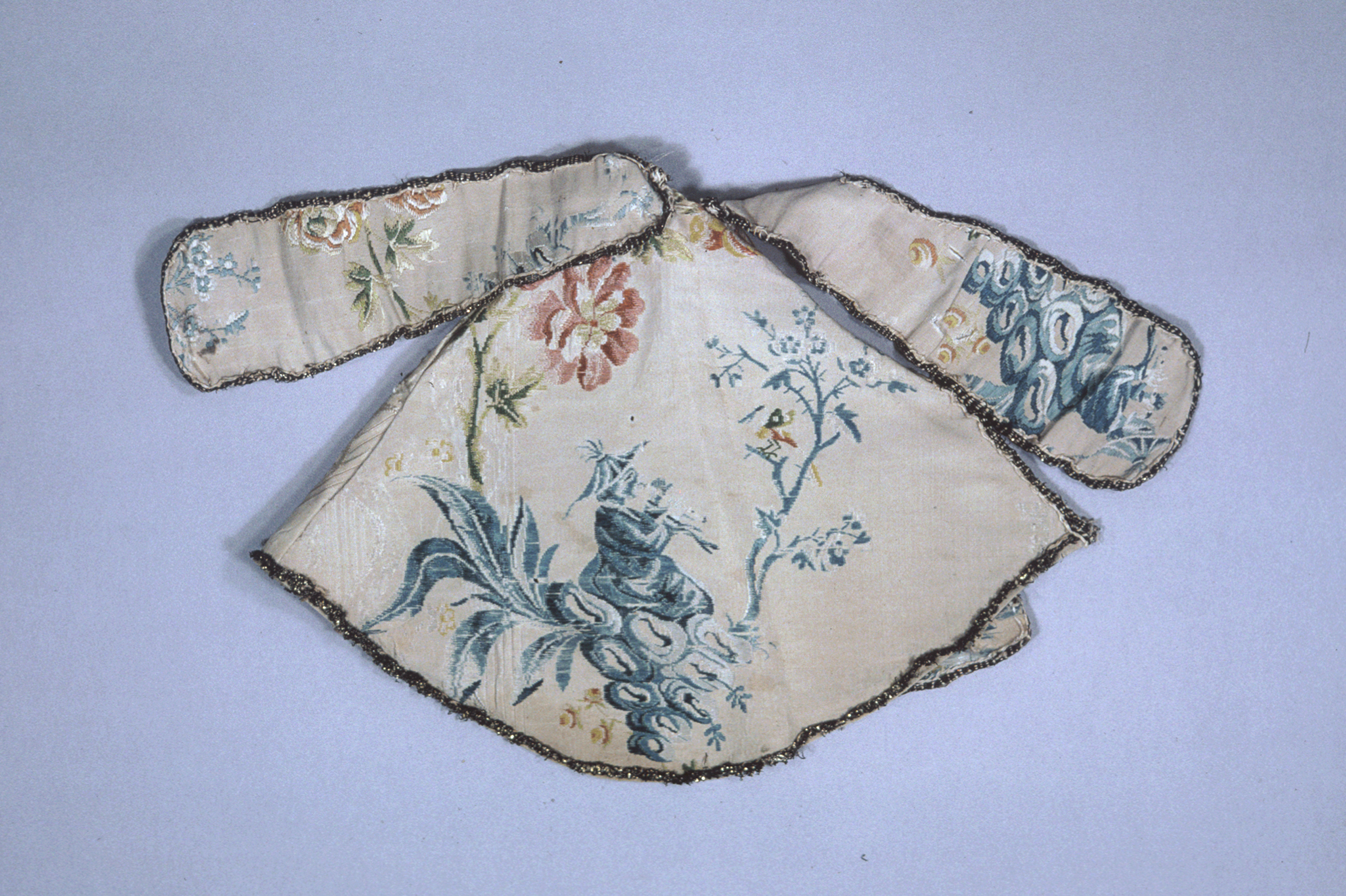 This is a Cape for an ecclesiastical figurine. It is dated 1750–1800. Its medium is silk, metallic yarns and its technique is plain weave with discontinuous supplementary weft (brocade). It is a part of the Textiles department.