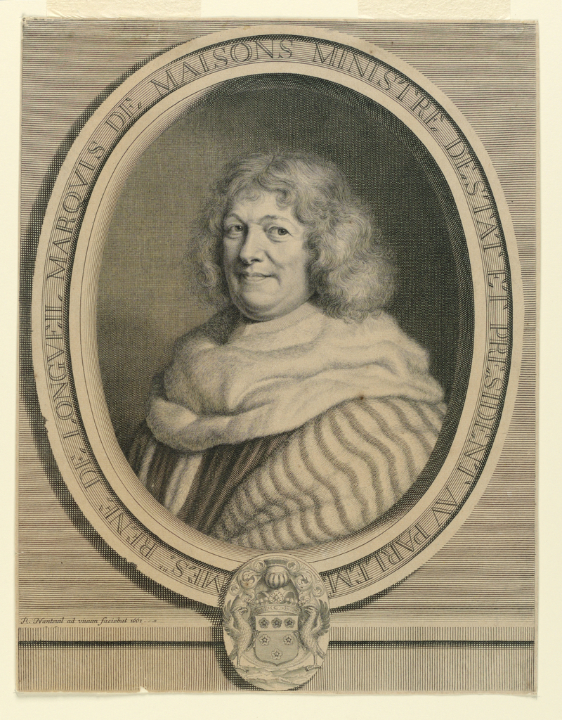 Print, Portrait of the Marquis de Longveil; Print Maker: Robert Nanteuil; France; engraving on paper; 32.2 × 24.8 cm (12 11/16 × 9 3/4 in.); Bequest of George Campbell Cooper; 1896-3-212