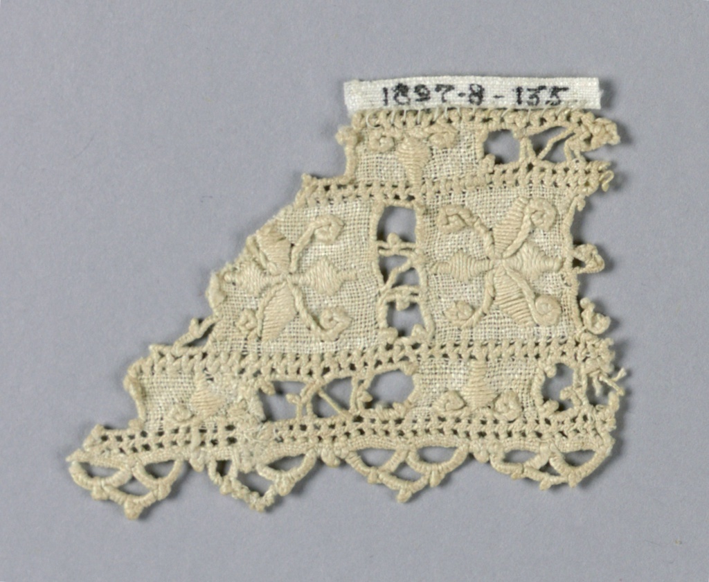 This is a Fragment. It is dated 16th century. Its medium is linen and its technique is cut work. It is a part of the Textiles department.