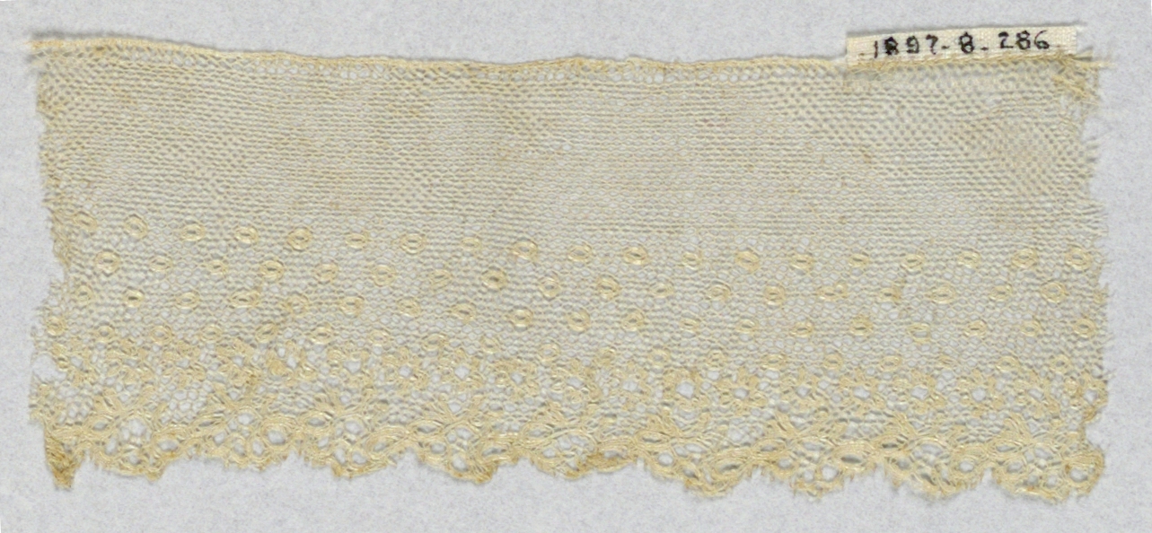 Fragment (France); linen; H x W: 11.9 x 4.7 cm (4 11/16 x 1 7/8 in.); 1897-8-286