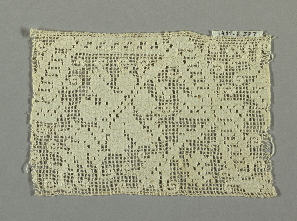 This is a Fragment. Its technique is embroidery on woven gauze weave. It is a part of the Textiles department.