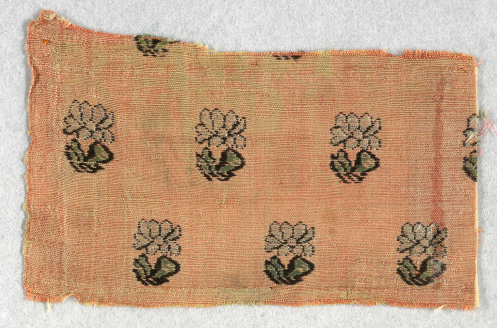 This is a Fragments. Its medium is silk warp. cotton and silk wefts. and its technique is brocaded plain weave. It is a part of the Textiles department.