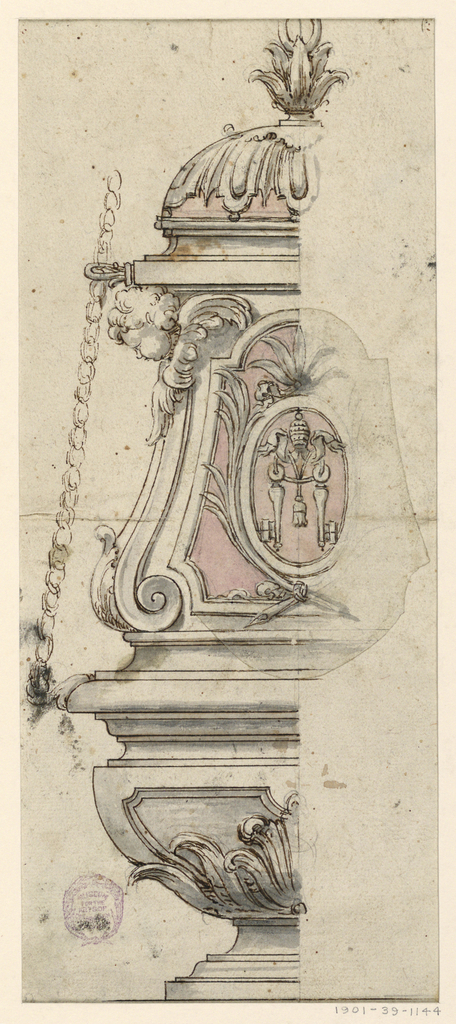 Drawing, Elevation of a Censer; Italy; chalk, pen and ink, brush and watercolor on paper; H x W: 26.4 × 12.1 cm (10 3/8 × 4 3/4 in.); Museum purchase through gift of various donors; 1901-39-1144