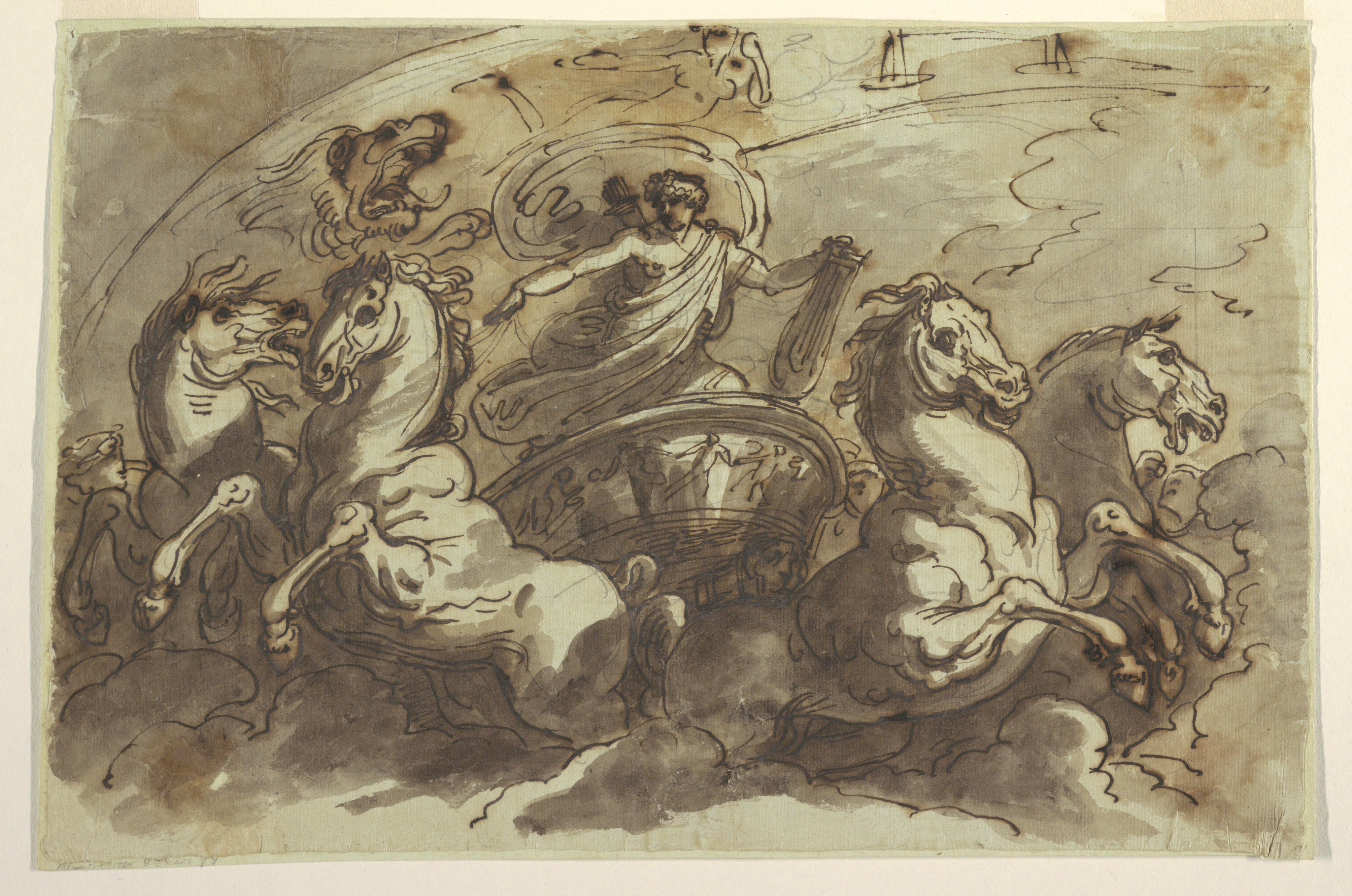 Drawing, Apollo Driving the Chariot of the Sun, for the Sala di Apollo e Diana, Palazzo Bianchetti, Bologna