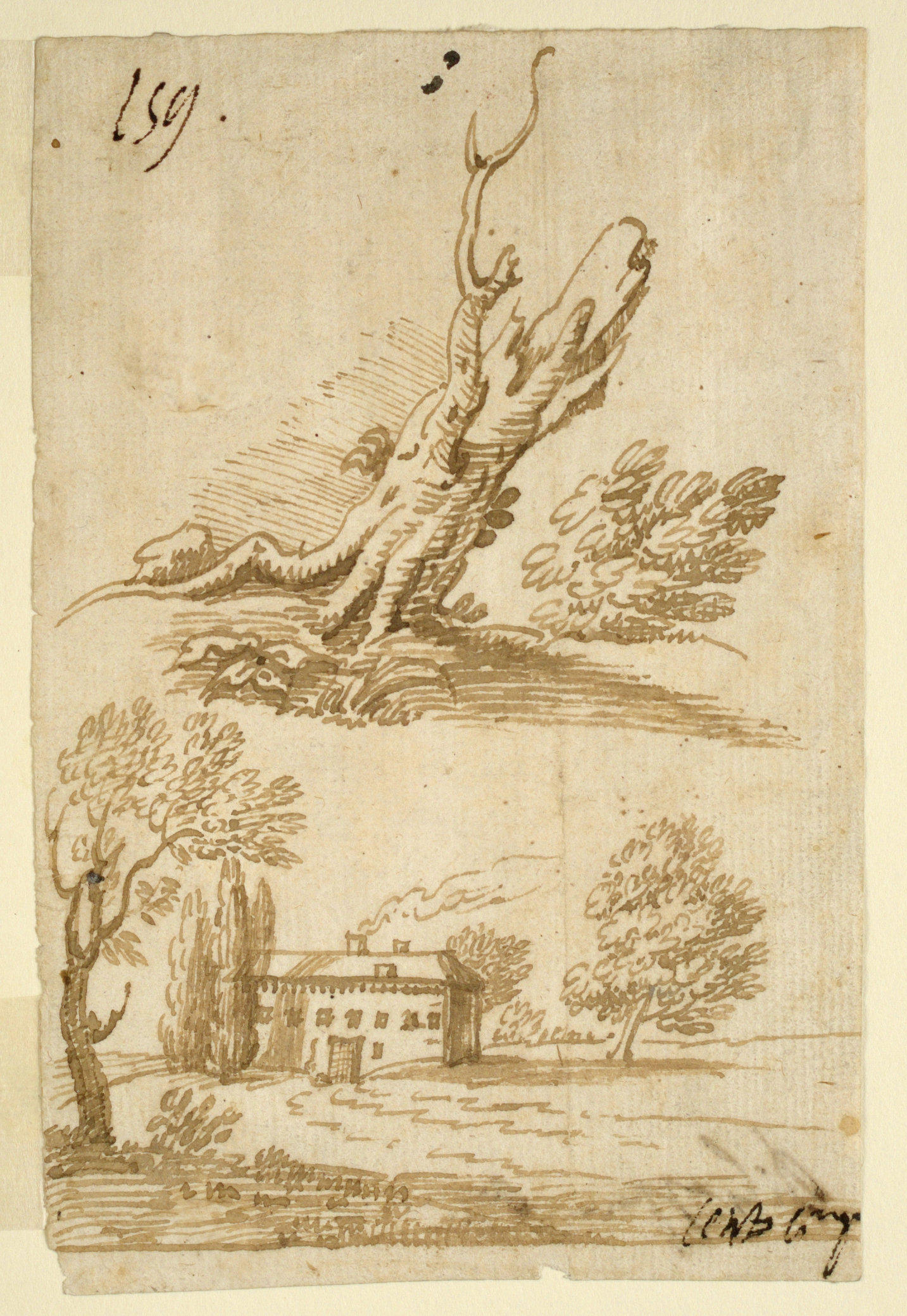 Drawing, Sketches of a Villa and Tree; Italy; pen and ink on paper; H x W: 16.4 × 10.8 cm (6 7/16 × 4 1/4 in.); Museum purchase through gift of various donors; 1901-39-344