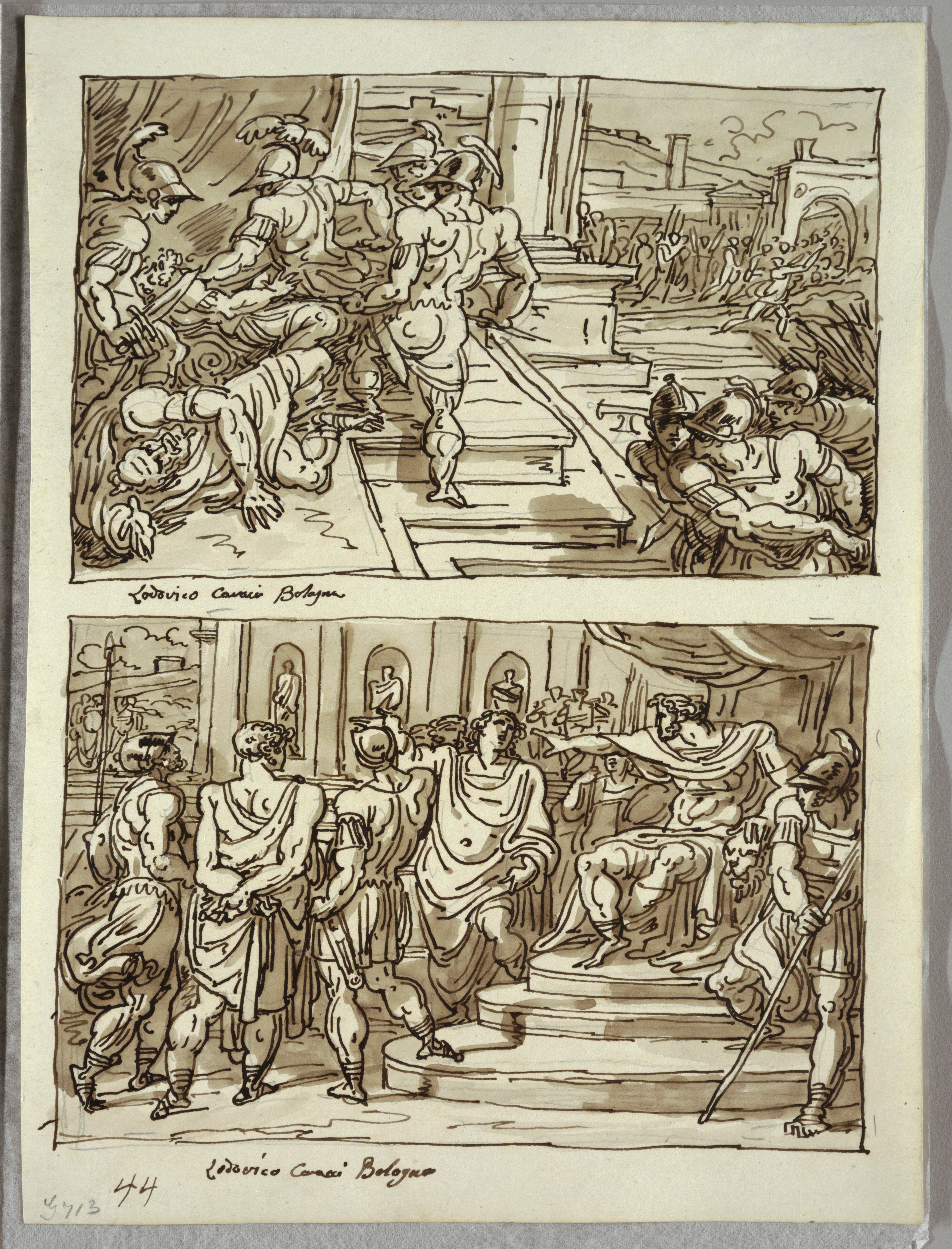 in pen and brown ink at center left: Lodovico Caraci Bologna; at lower left: 44 Lodovico Caracci Bologna