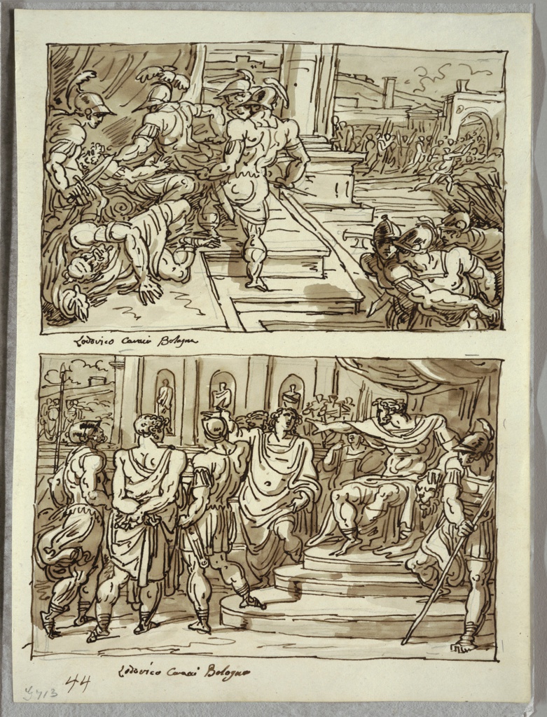 Sketchbook Folio, Remus Kills King Amulius; Remus Led in Chains before King Amulius; Two Studies After Carracci