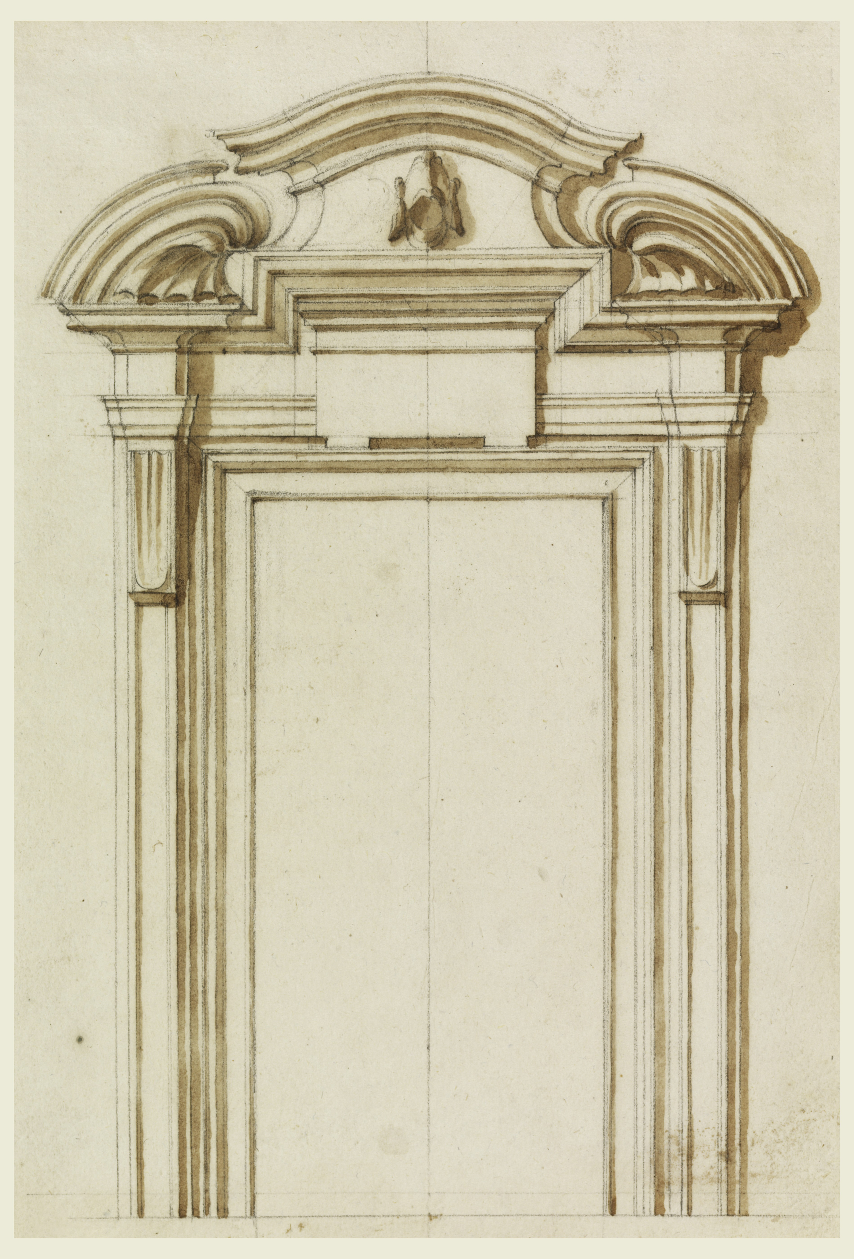 Drawing, Elevation of a Door Case; Filippo Marchionni (Italian, 1732–1805); Italy; black chalk, brush and sepia wash on laid paper; 22.5 x 15.4 cm (8 7/8 x 6 1/16 in.); Museum purchase through gift of various donors; 1901-39-620
