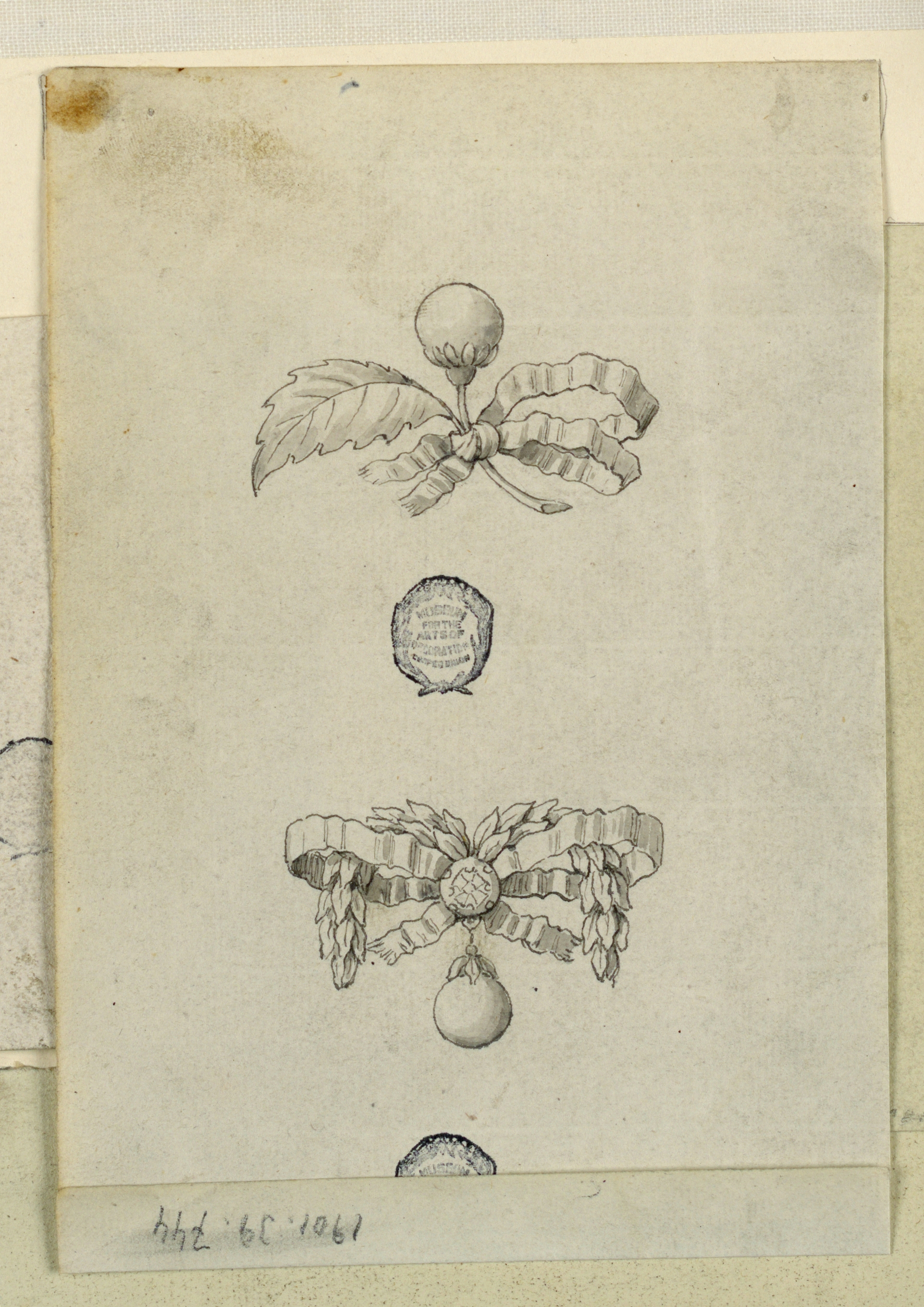 Drawing, Two Brooches; Italy; graphite, pen and ink, brush and watercolor on paper; H x W: 20.3 × 13.3 cm (8 in. × 5 1/4 in.); Museum purchase through gift of various donors; 1901-39-744