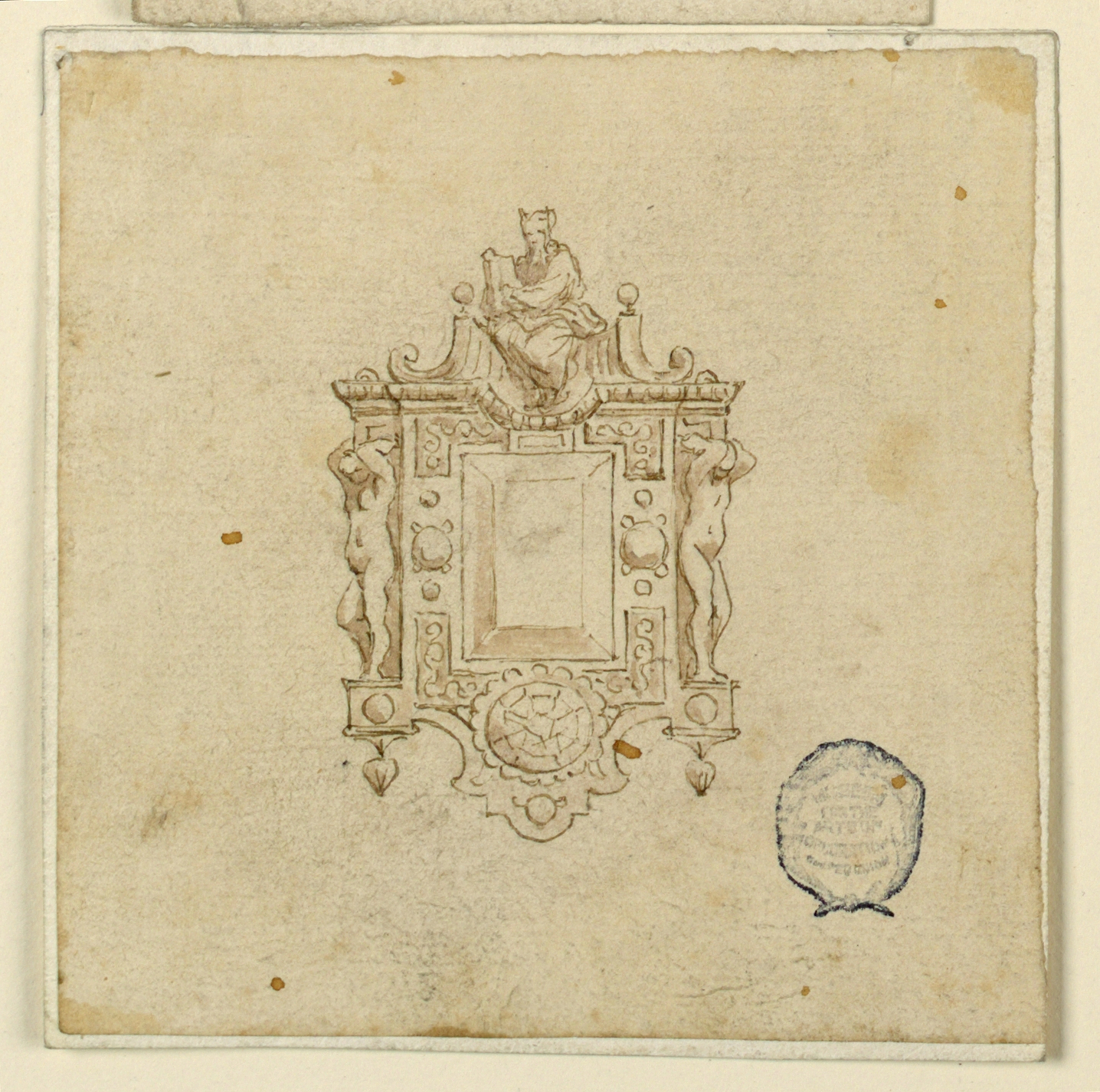 Drawing, Design for Brooch with Moses; Italy; pen and ink, brush and wash on paper; H x W: 14.4 × 10.2 cm (5 11/16 in. × 4 in.); Museum purchase through gift of various donors; 1901-39-790