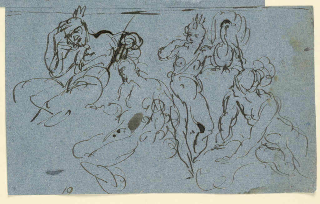 Drawing, Sketches for the Judgement of Paris; Italy; pen and ink on blue paper; H x W: 12.2 × 20.2 cm (4 13/16 × 7 15/16 in.); Museum purchase through gift of various donors; 1901-39-85