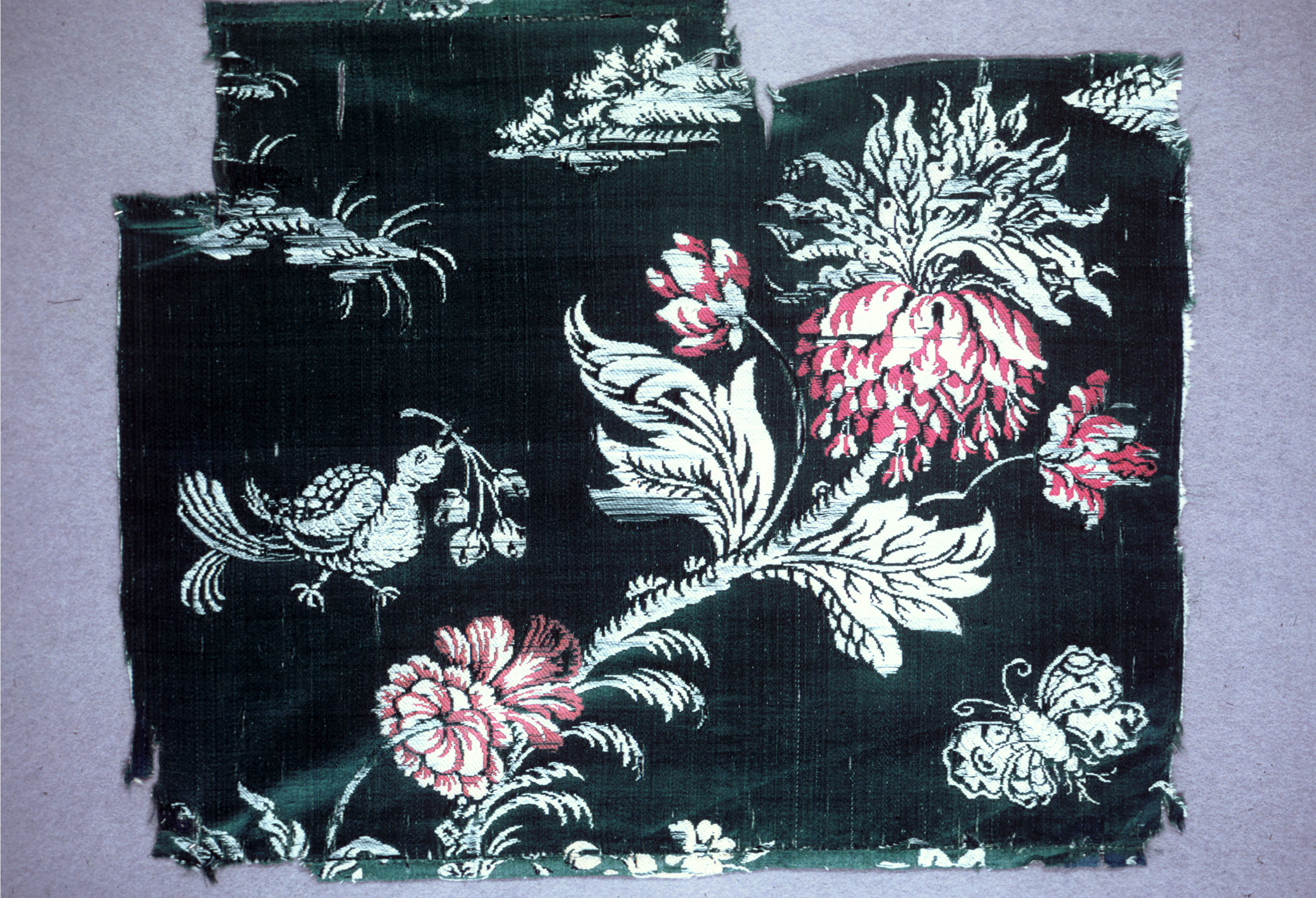This is a Fragment. It is dated 18th century and we acquired it in 1902. Its medium is silk. It is a part of the Textiles department.