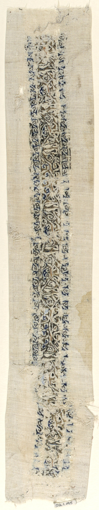 This is a Band. It is dated 10th–12th century and we acquired it in 1902. Its medium is embroidery using silk on plain weave linen. It is a part of the Textiles department.