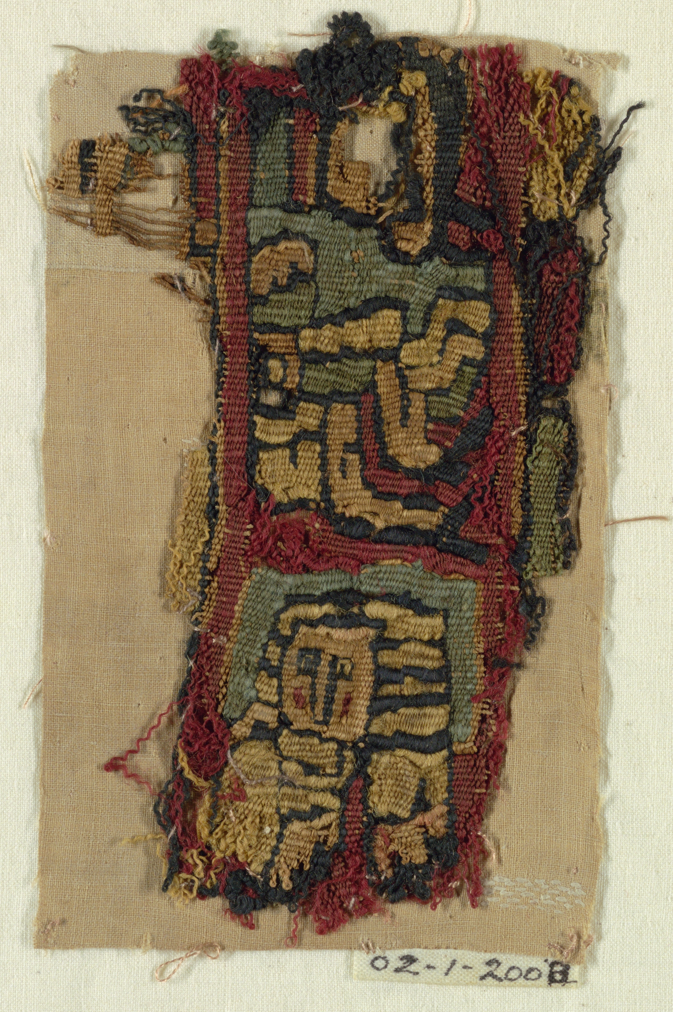 Fragment; warp: s-spun, z-twist linen. wefts; s-spun wools; H x W: 12.1 x 7.2 cm (4 3/4 x 2 13/16 in.); Gift of John Pierpont Morgan; 1902-1-200-b