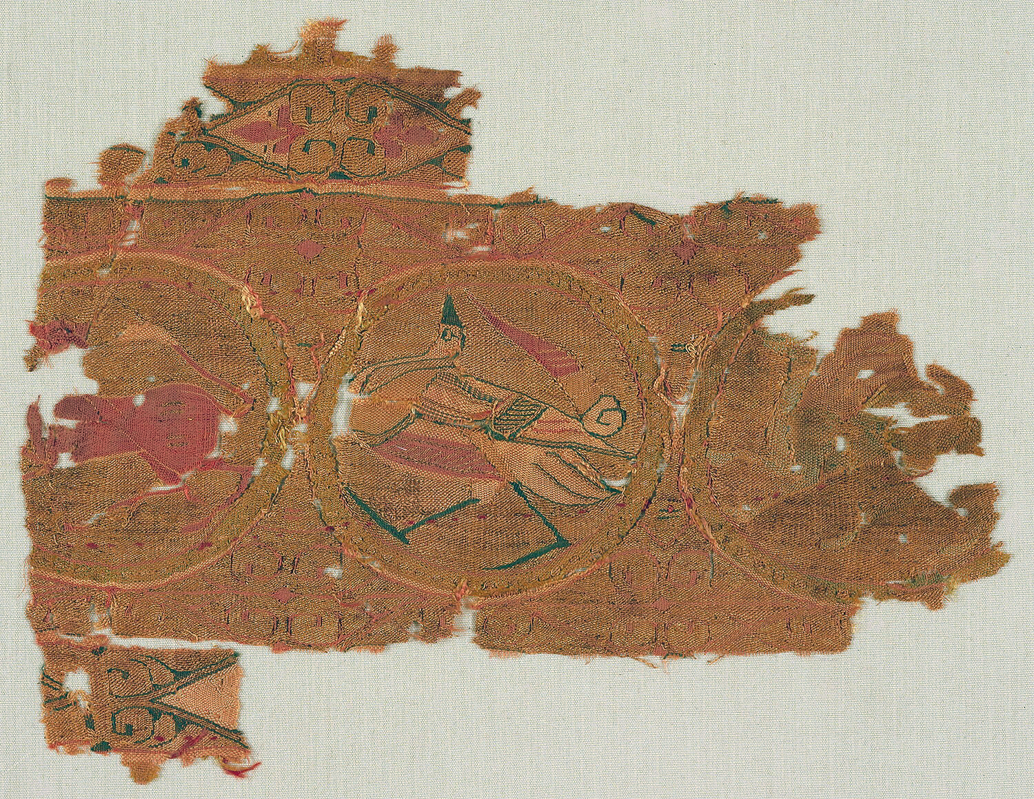 This is a Fragments. It is dated ca. 1246 and we acquired it in 1902. Its medium is silk and metallic yarns and its technique is slit tapestry. It is a part of the Textiles department.