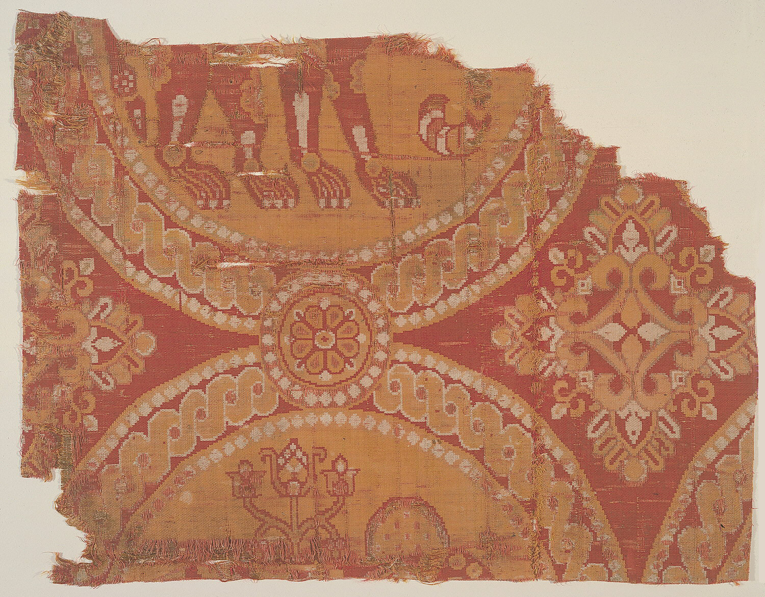 This is a Textile. It is dated 12th–13th century and we acquired it in 1902. Its medium is silk and its technique is compound weft twill (samite). It is a part of the Textiles department.
