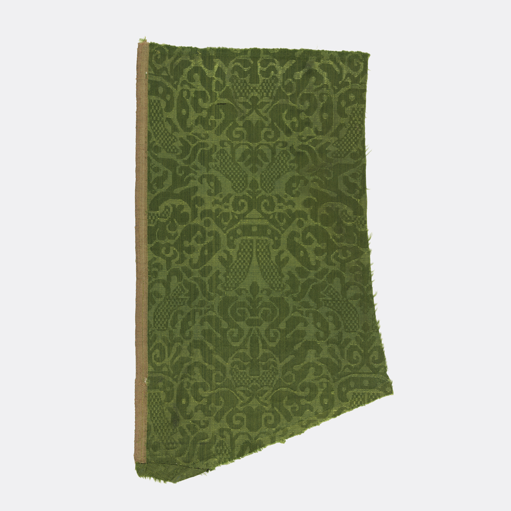 This is a Fragments. It is dated 17th century and we acquired it in 1902. Its medium is silk and its technique is 4&1 satin damask. It is a part of the Textiles department.