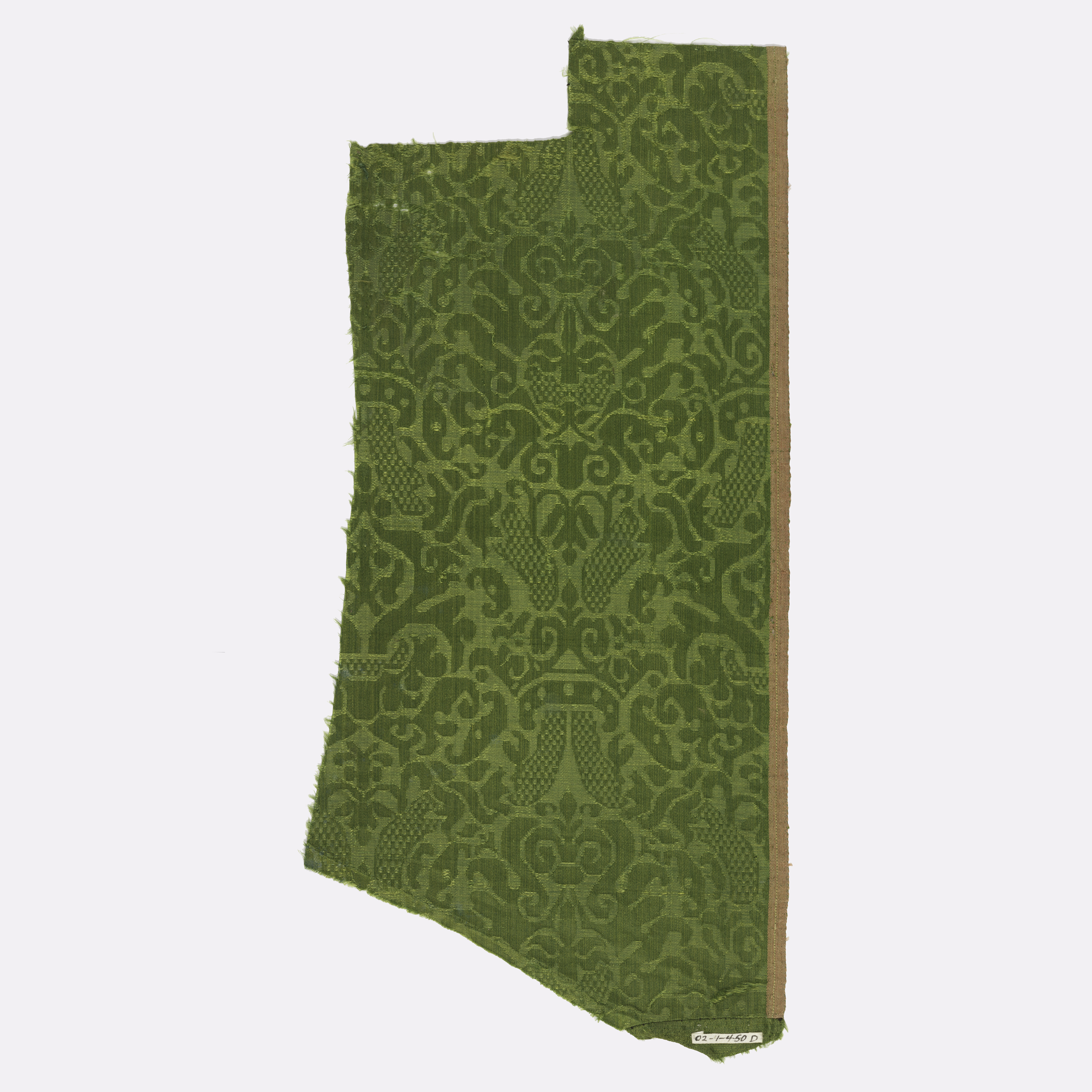 This is a Fragments. It is dated 17th century and we acquired it in 1902. Its medium is silk and its technique is 4&1 satin damask. It is a part of the Textiles department.