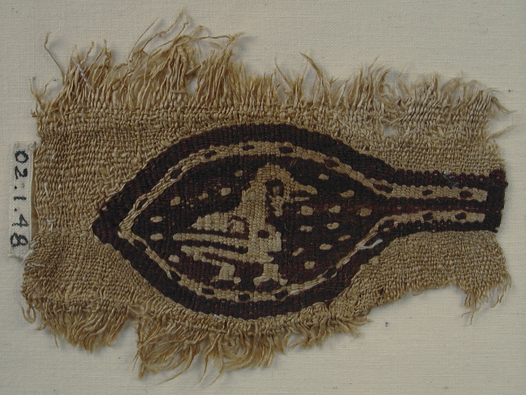This is a Fragment. It is dated 4th–5th century and we acquired it in 1902. Its medium is warp; s-spun linen. wefts; s-spun linen, s-spun wool and its technique is slit tapestry. It is a part of the Textiles department.