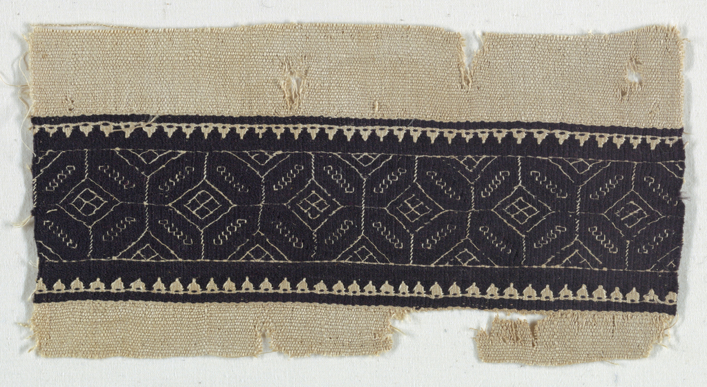 Fragment (Egypt); warp; s-spun linen. wefts; s-spun linen, s-spun wool; H x W: 22.6 x 11.7 cm (8 7/8 x 4 5/8 in. ); Gift of John Pierpont Morgan; 1902-1-69