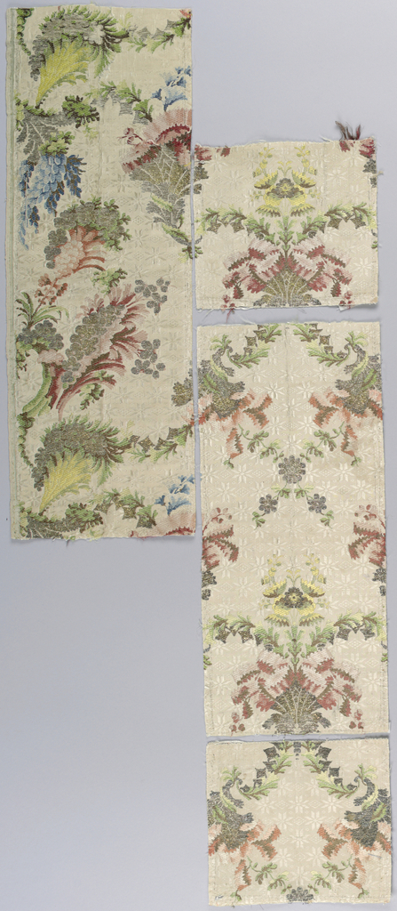 Fragments (France); silk, metallic; H x W (a): 53.3 x 19.1 cm (21 in. x 7 1/2 in.) H x W (b): 40.6 x 18.4 cm (16 in. x 7 1/4 in.) H x W (c): 16.5 x 18.4 cm (6 1/2 x 7 1/4 in.) H x W (d): 16.5 x 18.4 cm (6 1/2 x 7 1/4 in.); Gift of John Pierpont Morgan; 1902-1-946-a/d