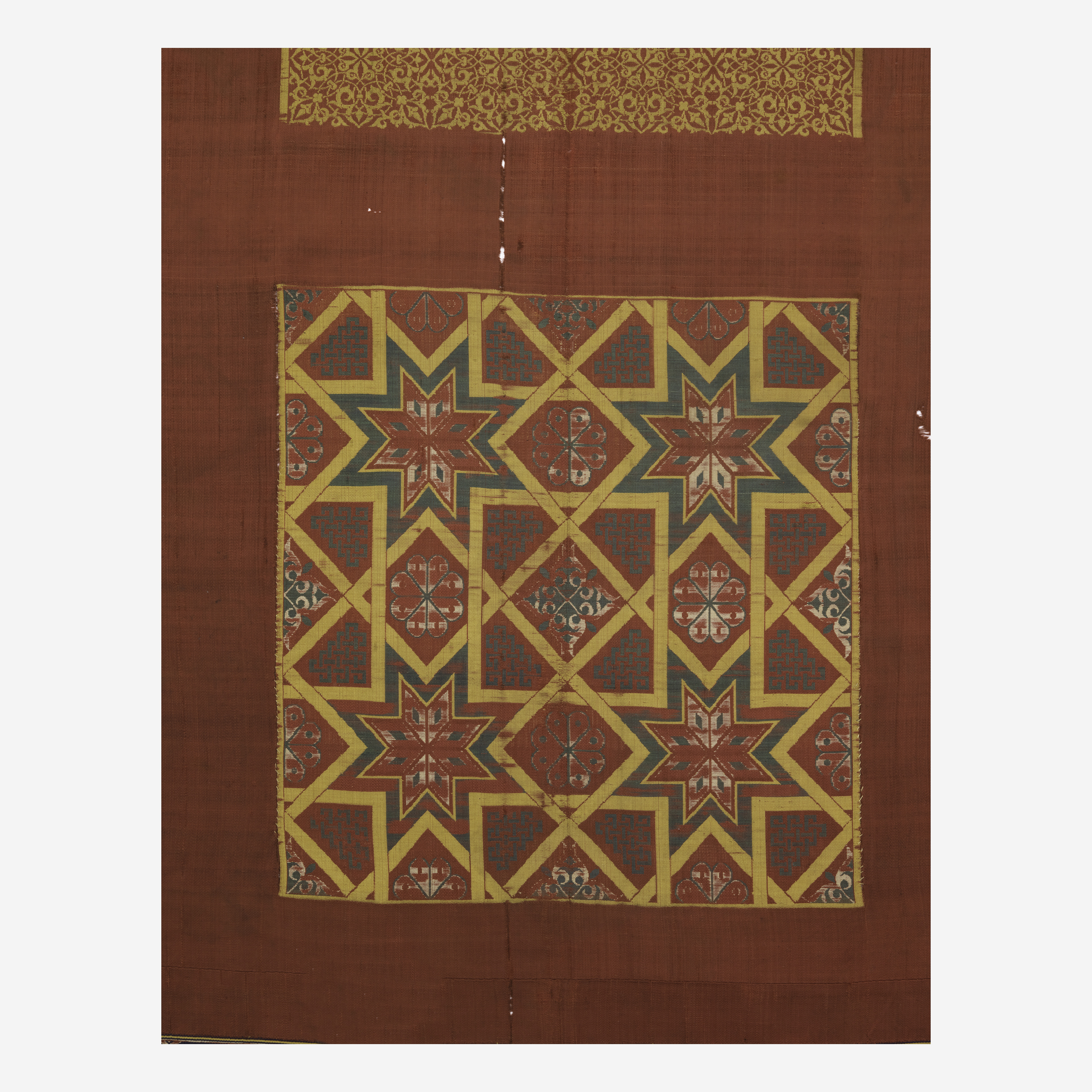 This is a Curtain panel. It is dated 15th century and we acquired it in 1902. Its medium is silk and its technique is compound twill with complementary wefts. It is a part of the Textiles department.