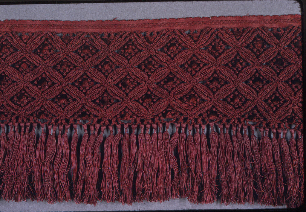 This is a Trimming. It is dated 19th century and we acquired it in 1902. Its medium is silk and its technique is macramé. It is a part of the Textiles department.