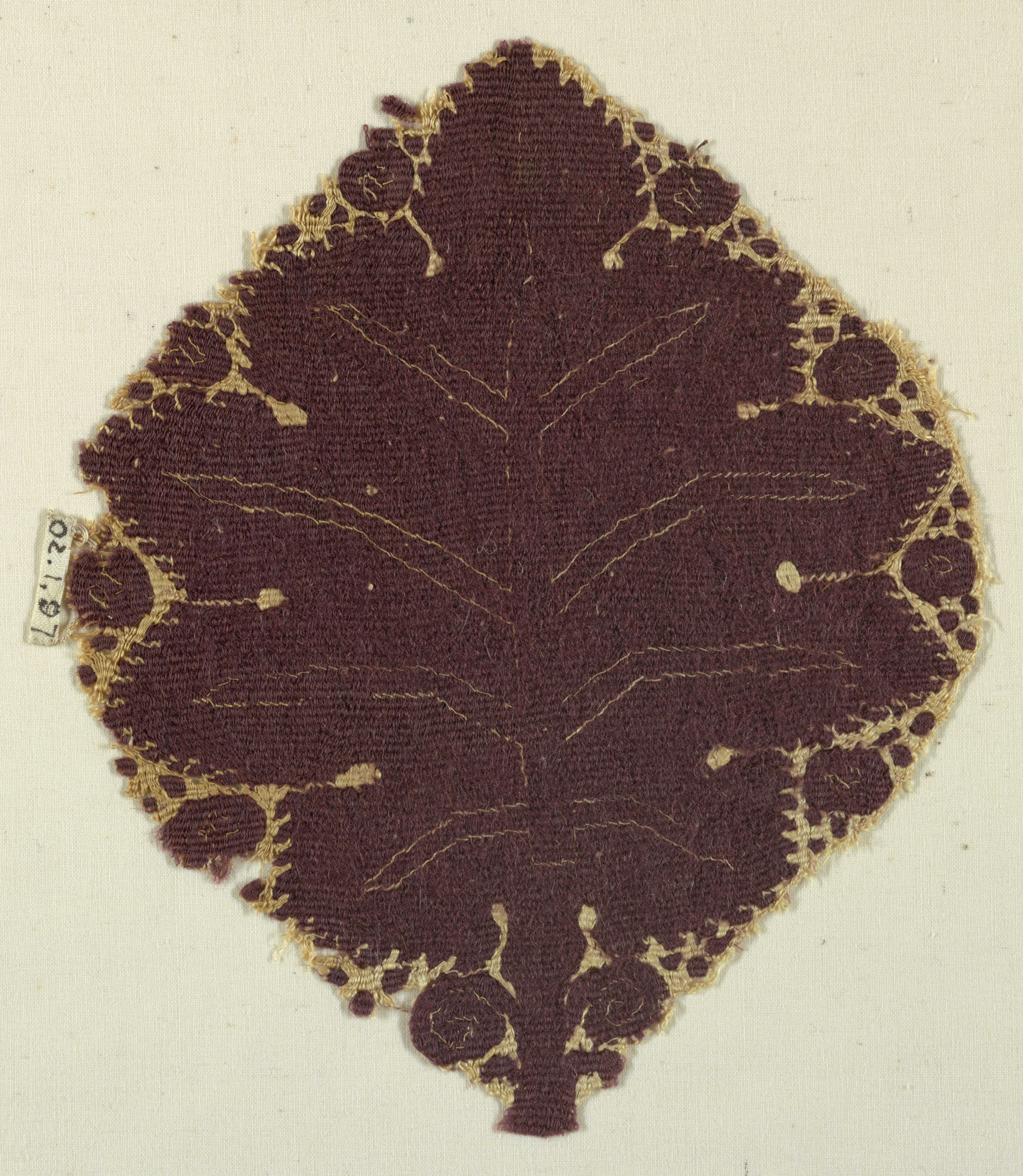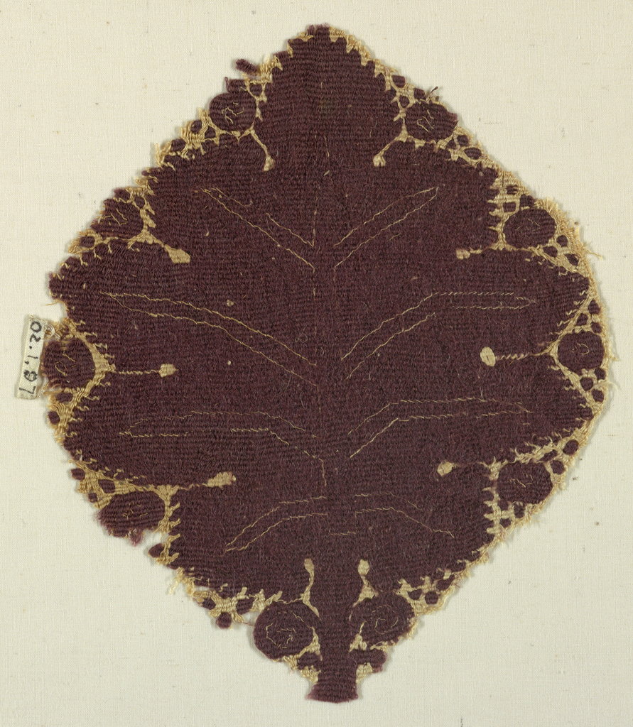 This is a Fragment. It is dated 3rd–4th century and we acquired it in 1902. Its medium is warp: s-spun linen. weft: s-spun linen, s-spun wool and its technique is slit tapestry with supplementary weft wrapping. It is a part of the Textiles department.