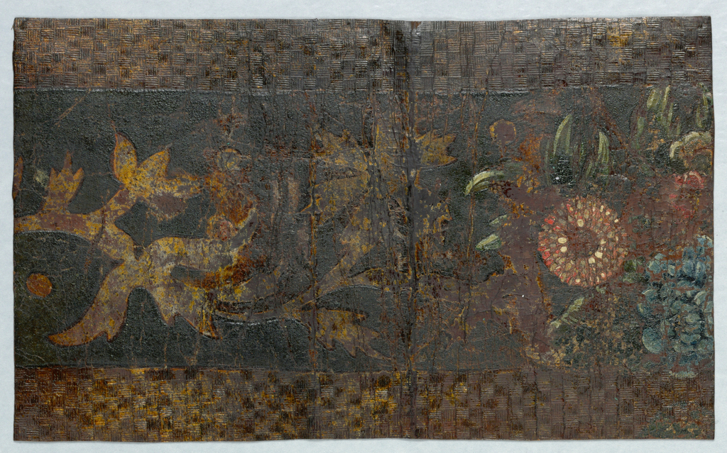 This is a Border. It is dated ca. 1700 and we acquired it in 1903. Its medium is leather, stamped, silvered, painted. It is a part of the Wallcoverings department.