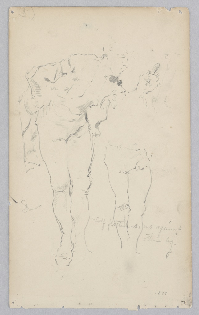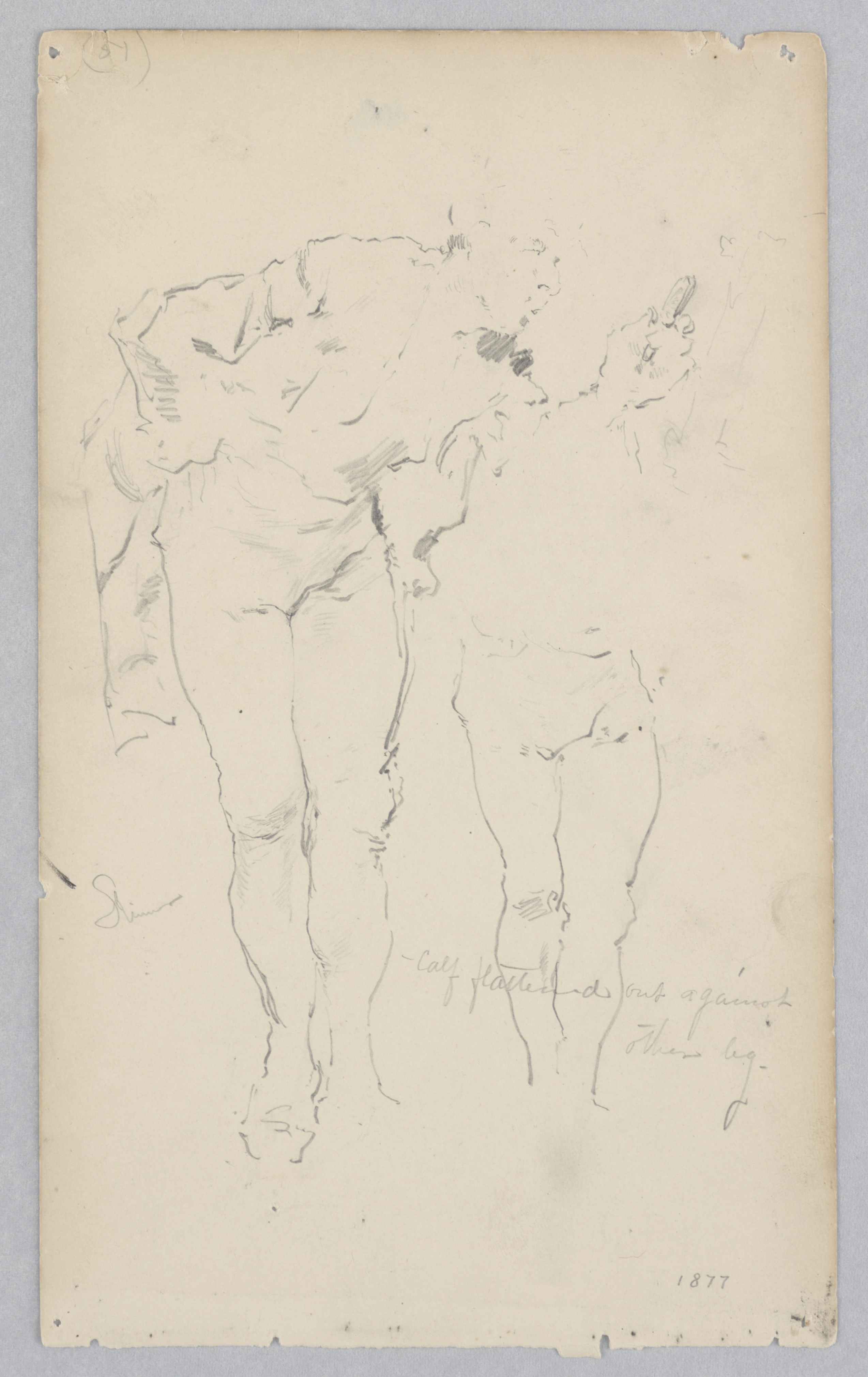Numbered in graphite, upper left corner: (51); Inscribed in graphite, lower right (artist's hand): calf flattened out against/ other leg; Inscribed in graphite, lower right corner: 1877