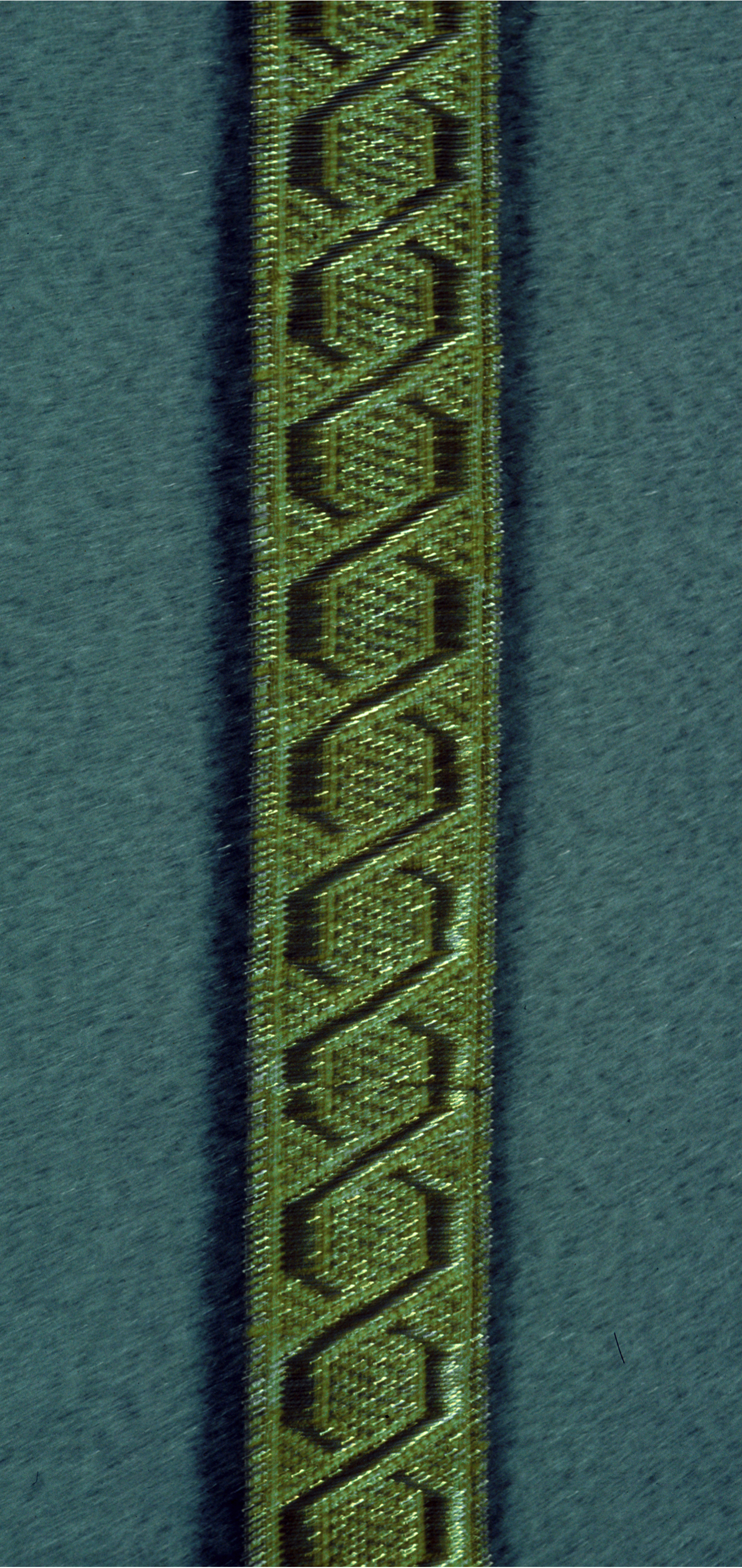 This is a Trimming. It is dated mid-18th century and we acquired it in 1905. Its medium is silk, metallic thread and its technique is woven. It is a part of the Textiles department.