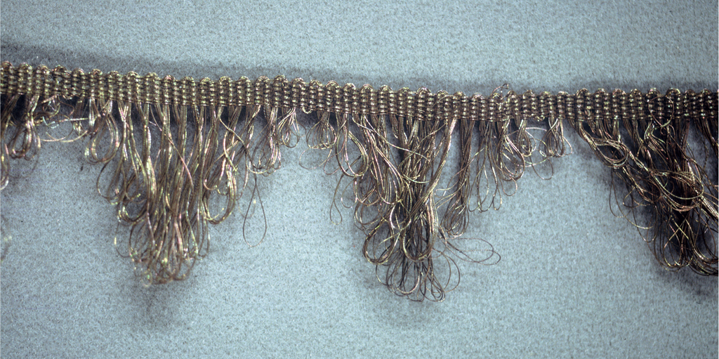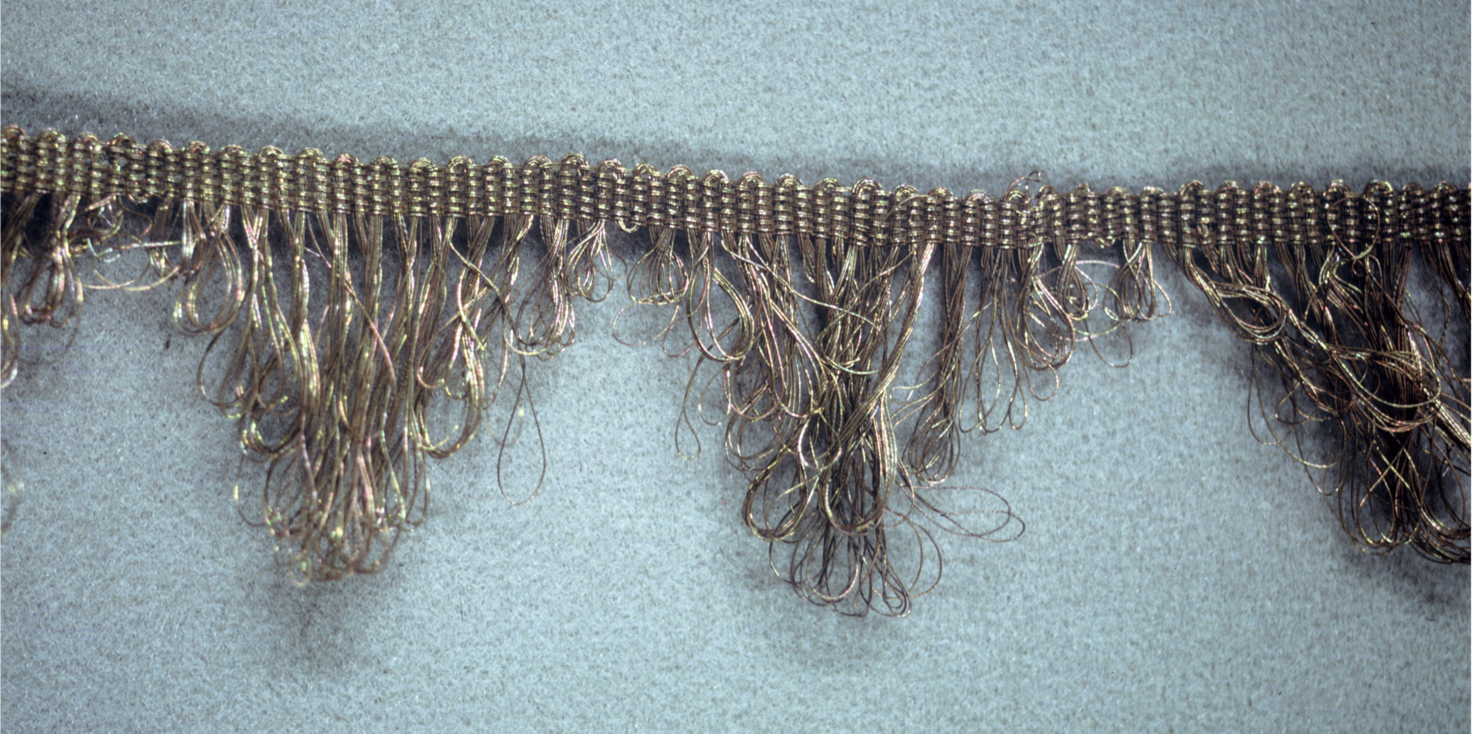 This is a Fringe. It is dated 19th century and we acquired it in 1905. Its medium is gilt foil on a silk core and its technique is woven. It is a part of the Textiles department.