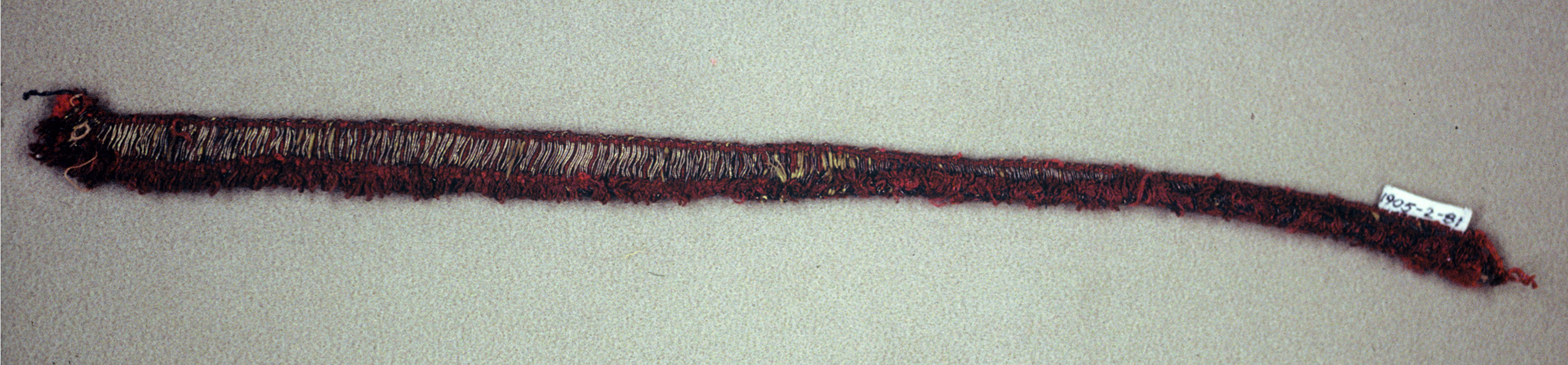 This is a Trimming. It is dated 16th century and we acquired it in 1905. Its medium is silk, gilt foil on a silk core. It is a part of the Textiles department.