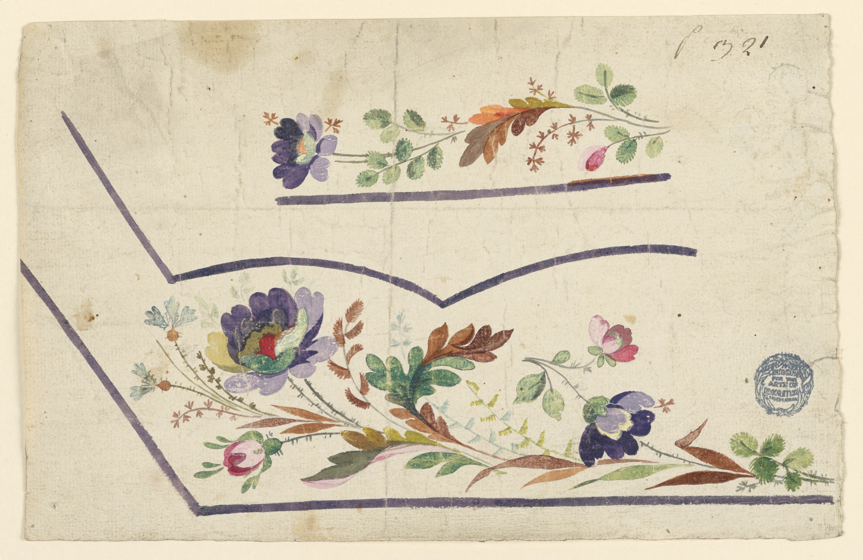 Drawing, Design for a Waistcoat; France; various gouaches on paper; 17.2 × 26.7 cm (6 3/4 × 10 1/2 in.); Gift of Jacob H. Schiff; 1906-21-181