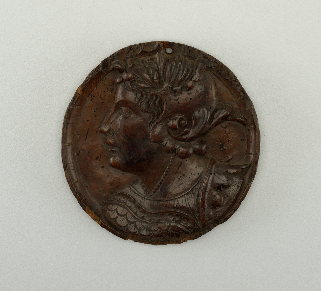 This is a Roundel. It is dated 1530–50 and we acquired it in 1908. Its medium is walnut, carved. It is a part of the Product Design and Decorative Arts department.