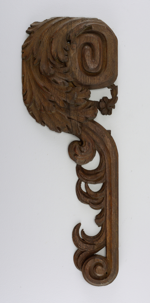 This is a bracket. It is dated early 18th century and we acquired it in 1908. Its medium is oak, carved. It is a part of the Product Design and Decorative Arts department.