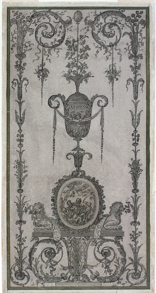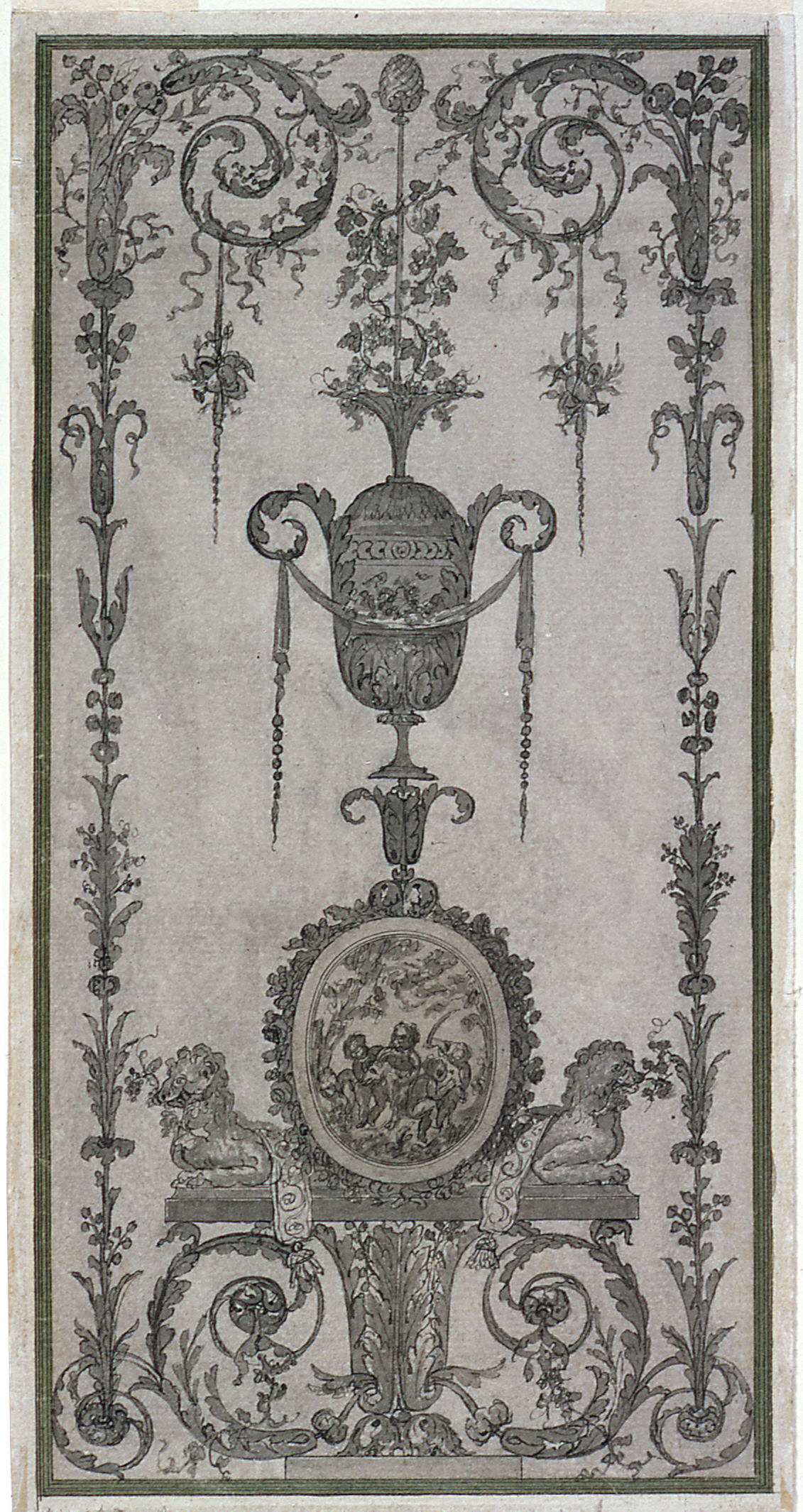 Drawing, Arabesque Design for a Panel; France; pen and ink, brush and wash, pencil on paper; 29.2 x 15.1 cm (11 1/2 x 5 15/16 in.); Purchased for the Museum by the Advisory Council; 1908-26-131