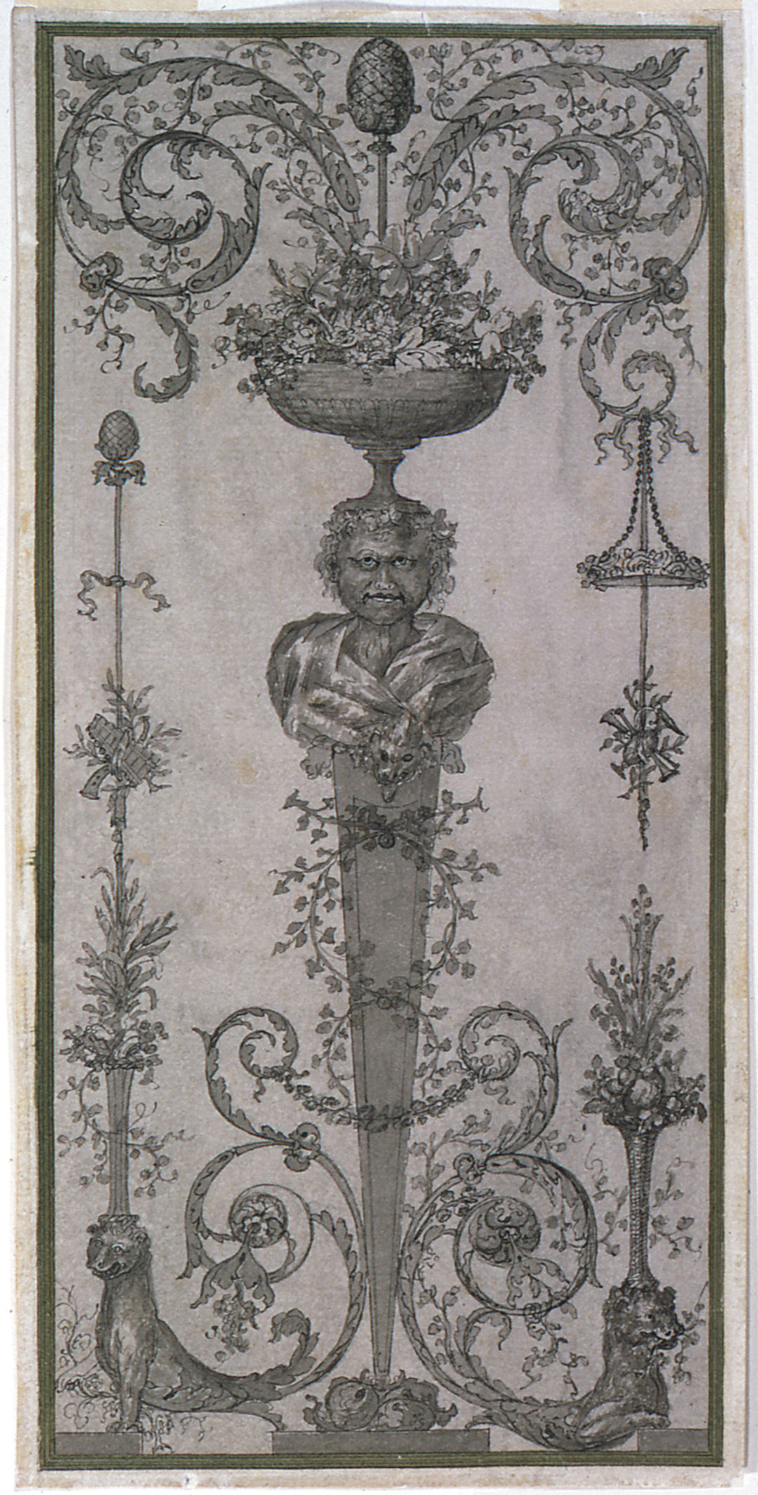Drawing, Arabesque Design for a Panel; France; pen and ink, brush and wash on paper; Sheet: 27.9 x 13.1 cm (11 x 5 3/16 in.); Purchased for the Museum by the Advisory Council; 1908-26-132