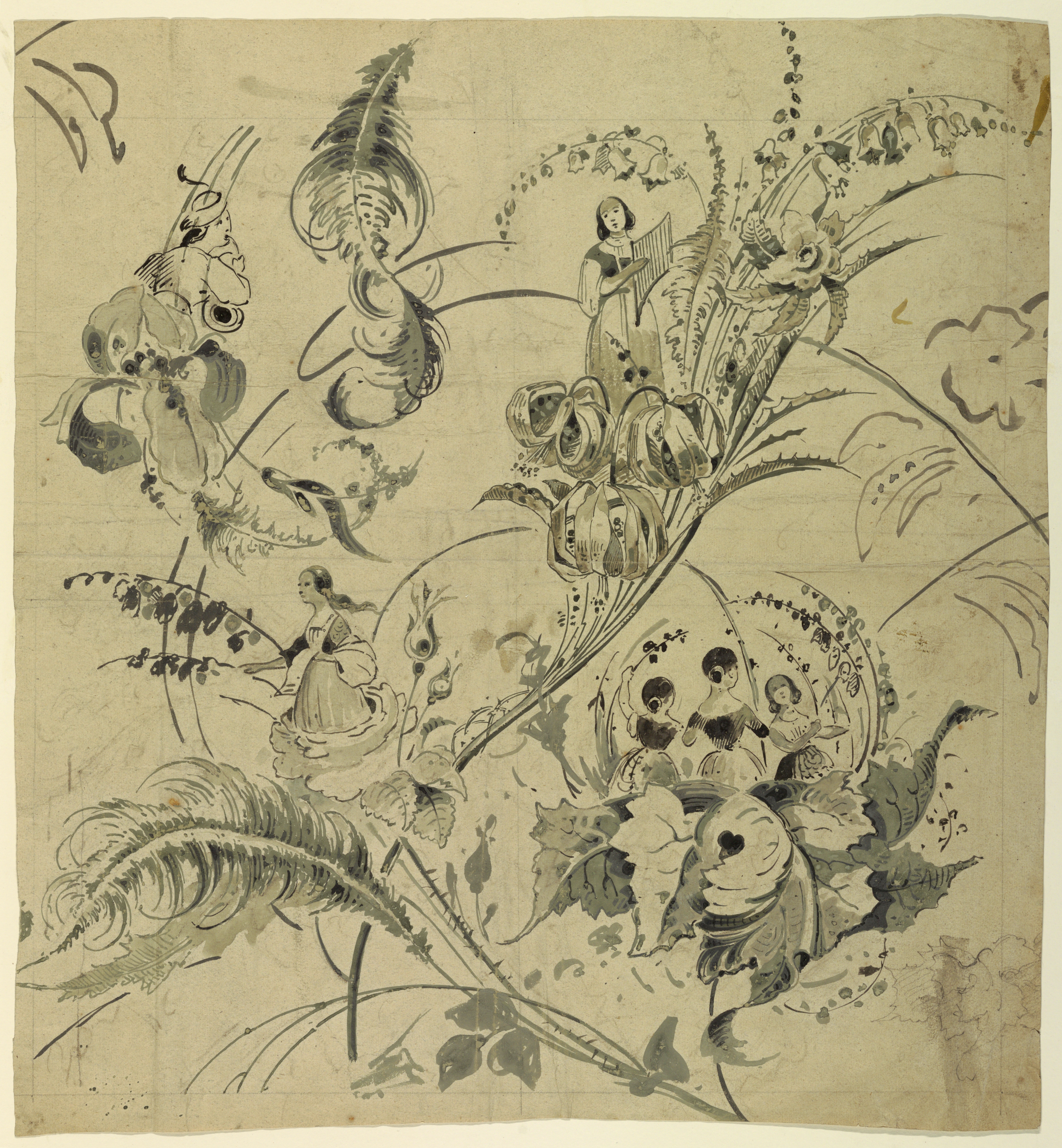 Drawing, Design for Textile or Wallpaper; brush and watercolor on paper; 49 × 53 cm (19 5/16 × 20 7/8 in.); Gift of Eleanor and Sarah Hewitt; 1909-13-2