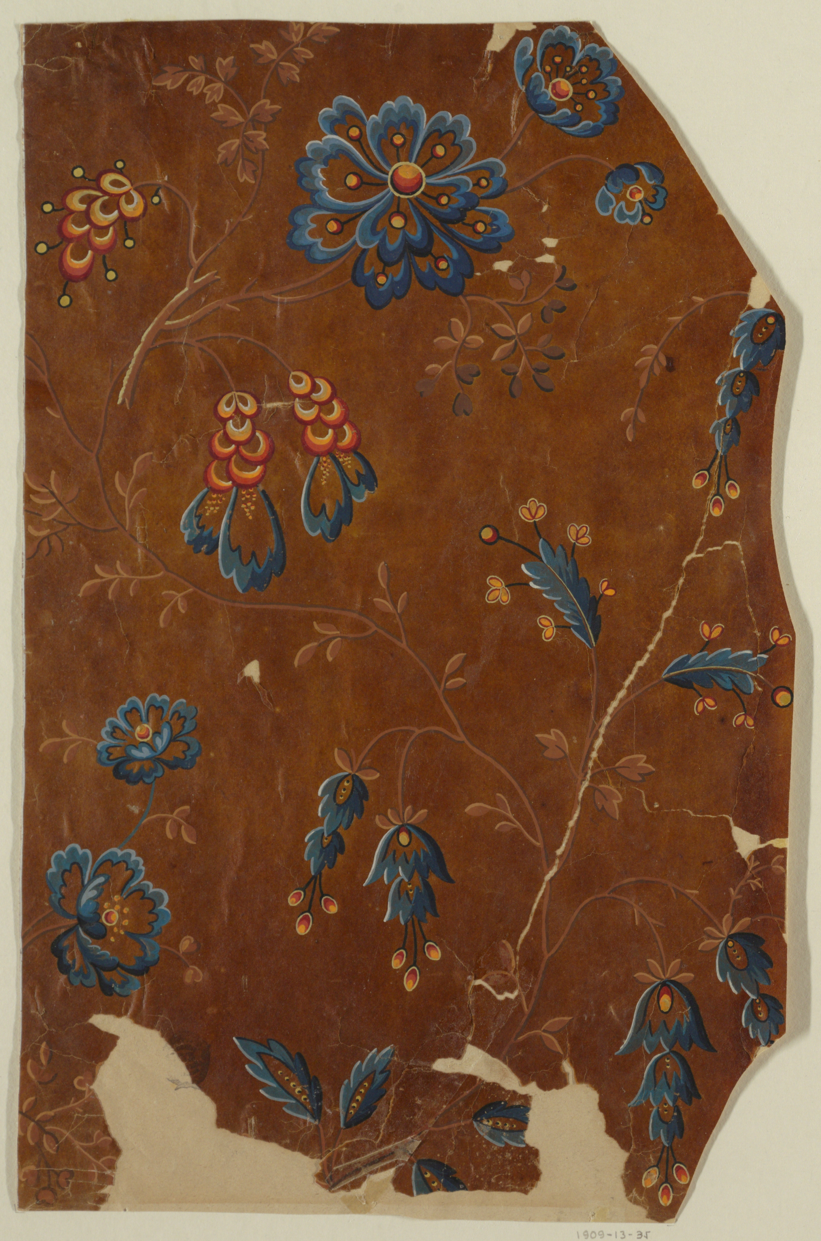 Drawing, Design for a Silk Brocade, Fragment; France; brush and gouache on oily tracing paper; 38.1 × 24.3 cm (15 in. × 9 9/16 in.); Gift of Eleanor and Sarah Hewitt; 1909-13-35